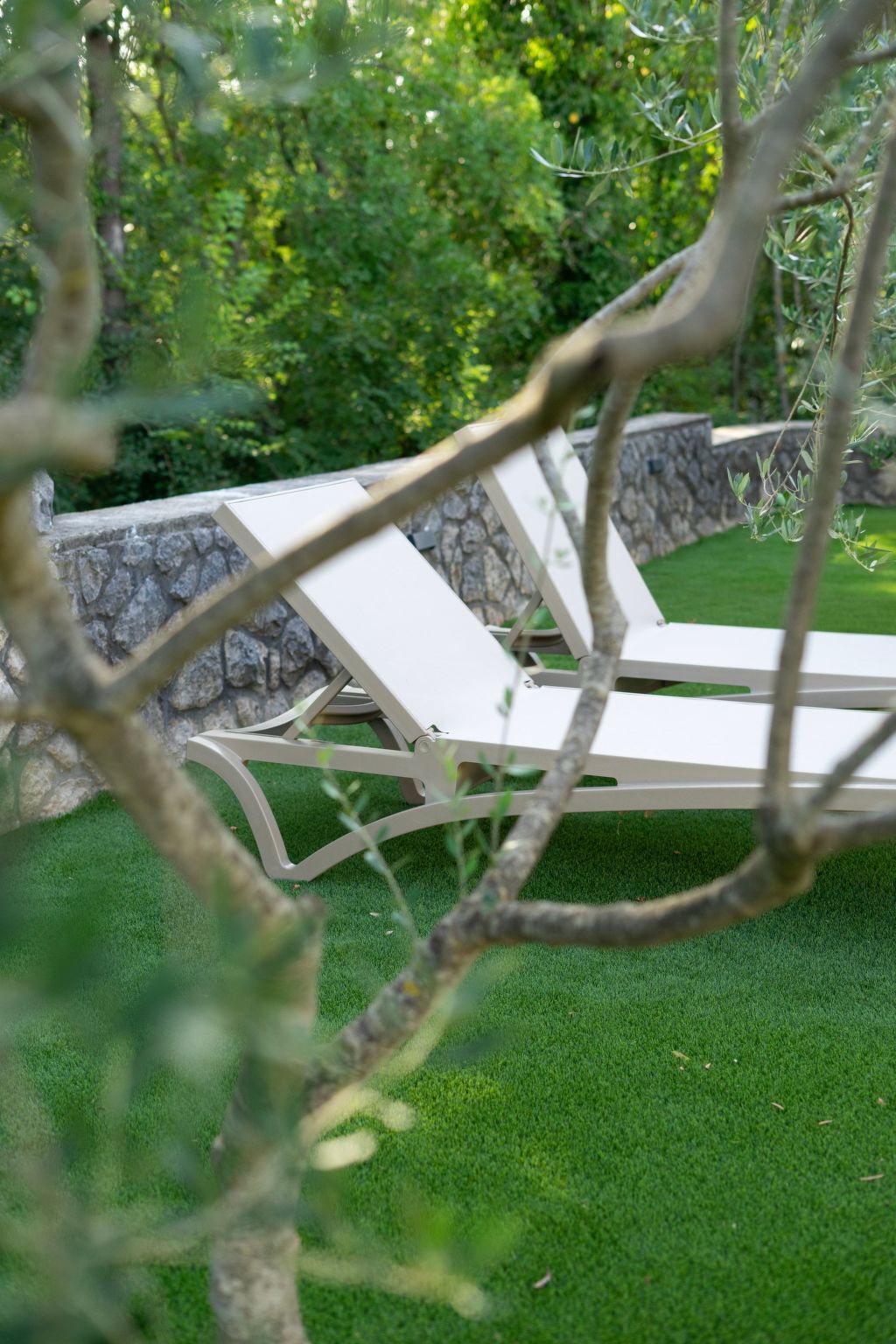 The villa’s Mediterranean garden, adorned with herbs and olive trees, offers a tranquil backdrop for relaxation.