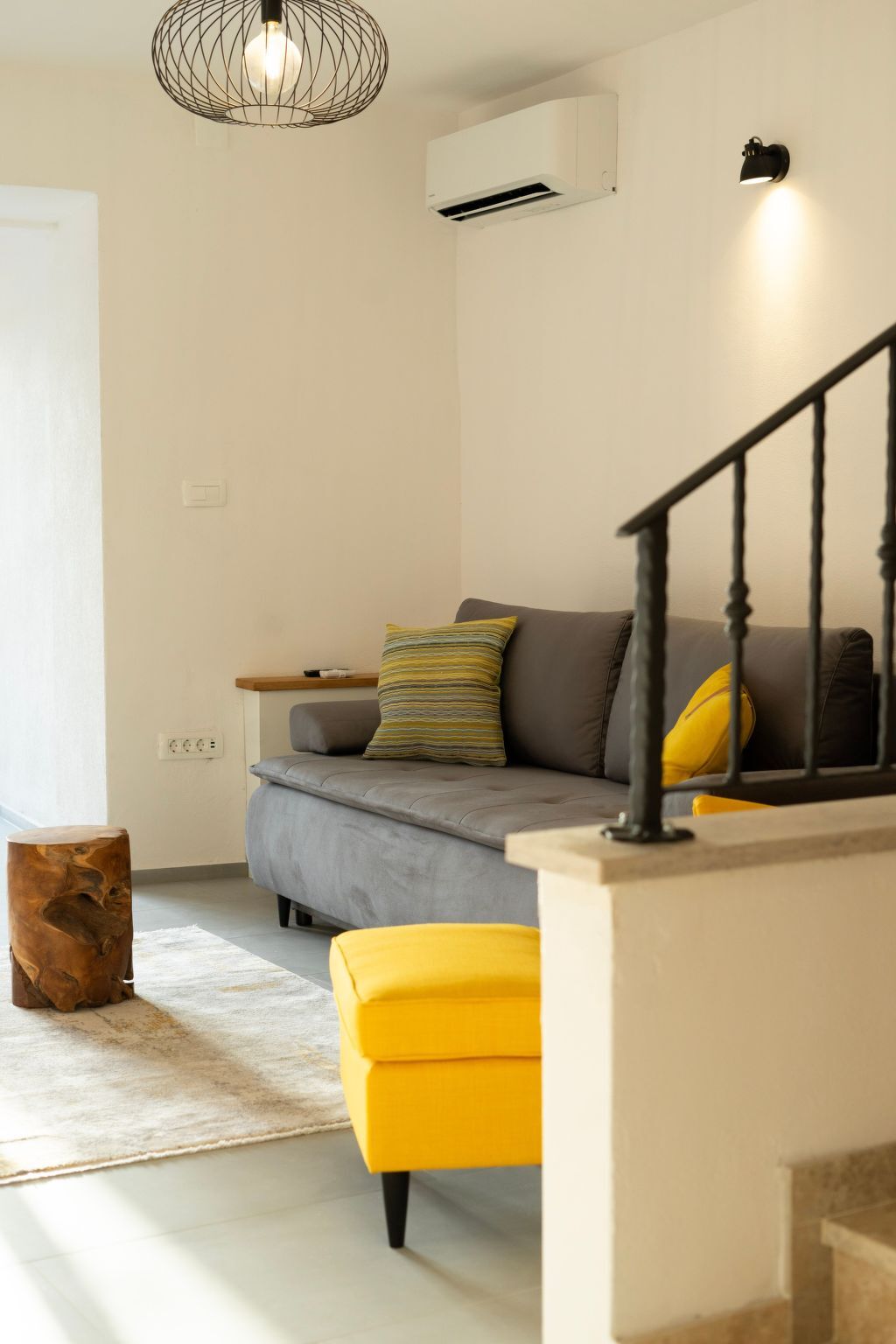 The comfort extends to the upper floor, where two inviting bedrooms await, each featuring a double bed, TV, air conditioning, and wardrobe.
