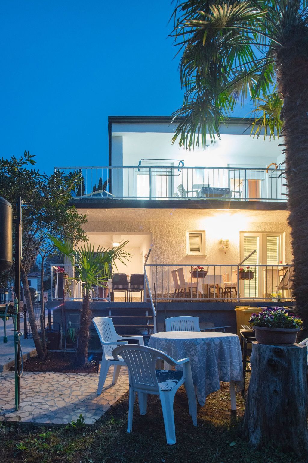 On the balcony and terrace on the ground floor there are tables and chairs for dining, on the terrace on the 1st floor there is lounge furniture and deckchairs for sunbathing.