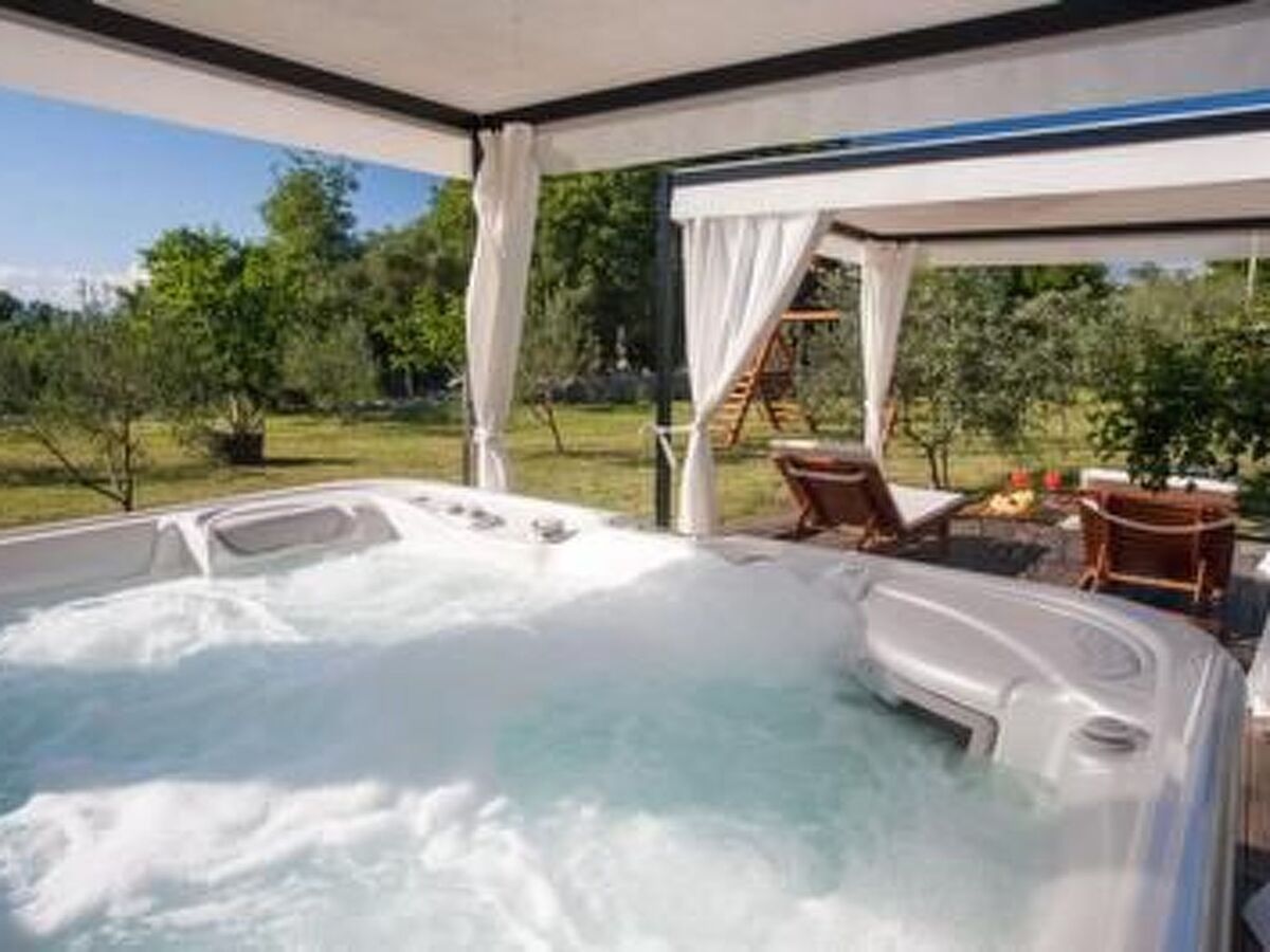 In the back garden, there are olive trees, a private swimming pool and an outdoor hot tub (brand HotSpring Summit) with deck chairs.There are also a billiards table and a table-tennis table in a cellar, as well as an outdoor grill.