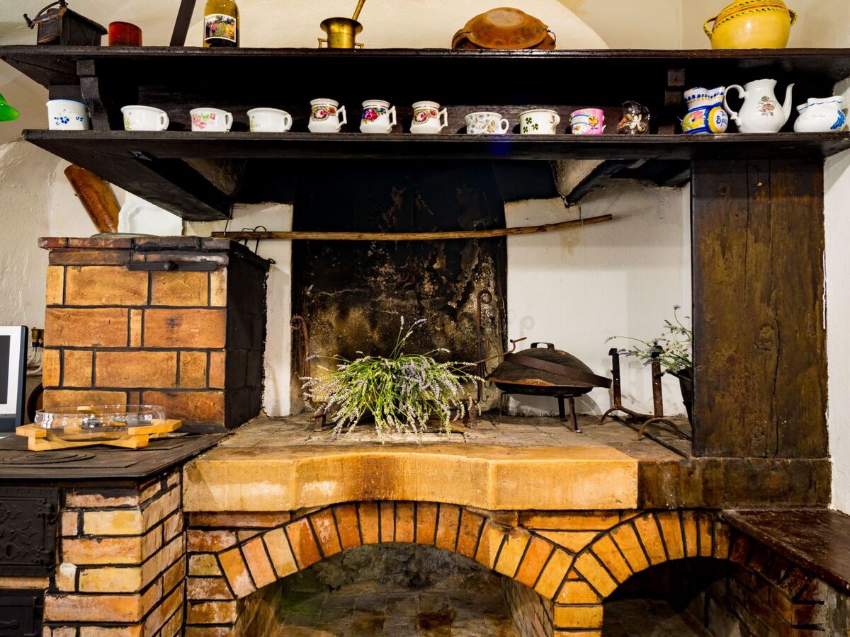 A traditional style lounge sits on an intermediate floor, offering a cool retreat in the summer and a cozy spot by the fireplace in winter, complemented by a spacious kitchen that leads out to a large covered outdoor eating area complete with BBQ facilities.