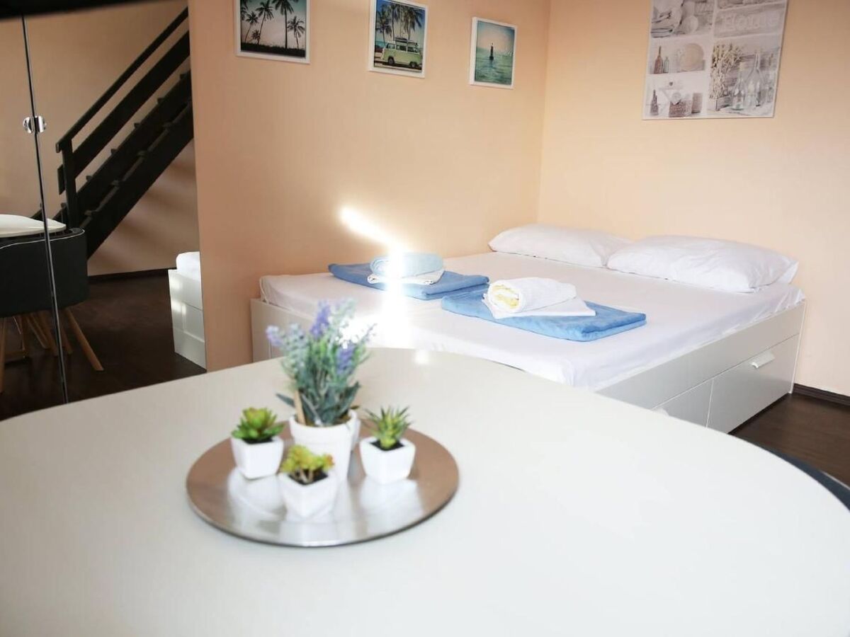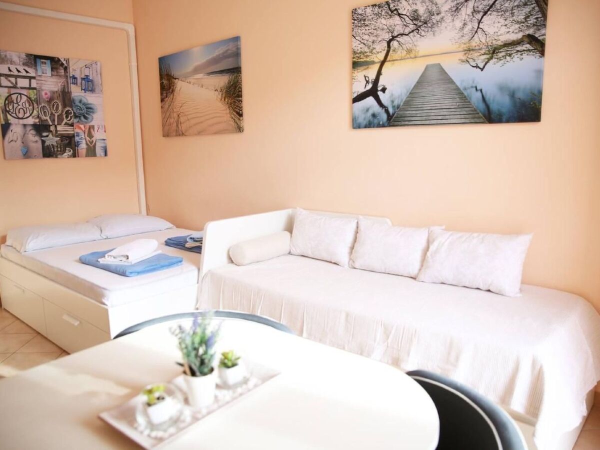 The studios are equipped as follows: Studio 1 - combined living/bedroom with bunk beds for 3 people, kitchenette and separate bathroom