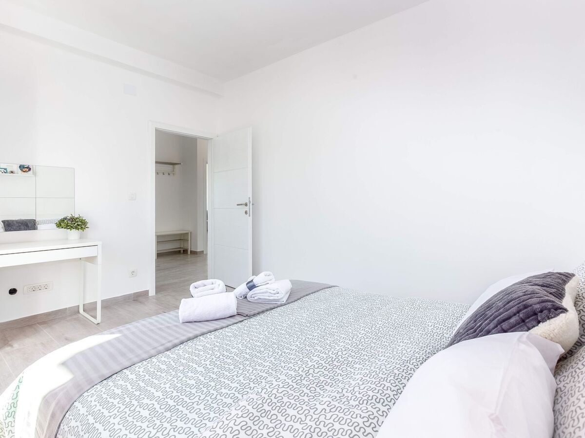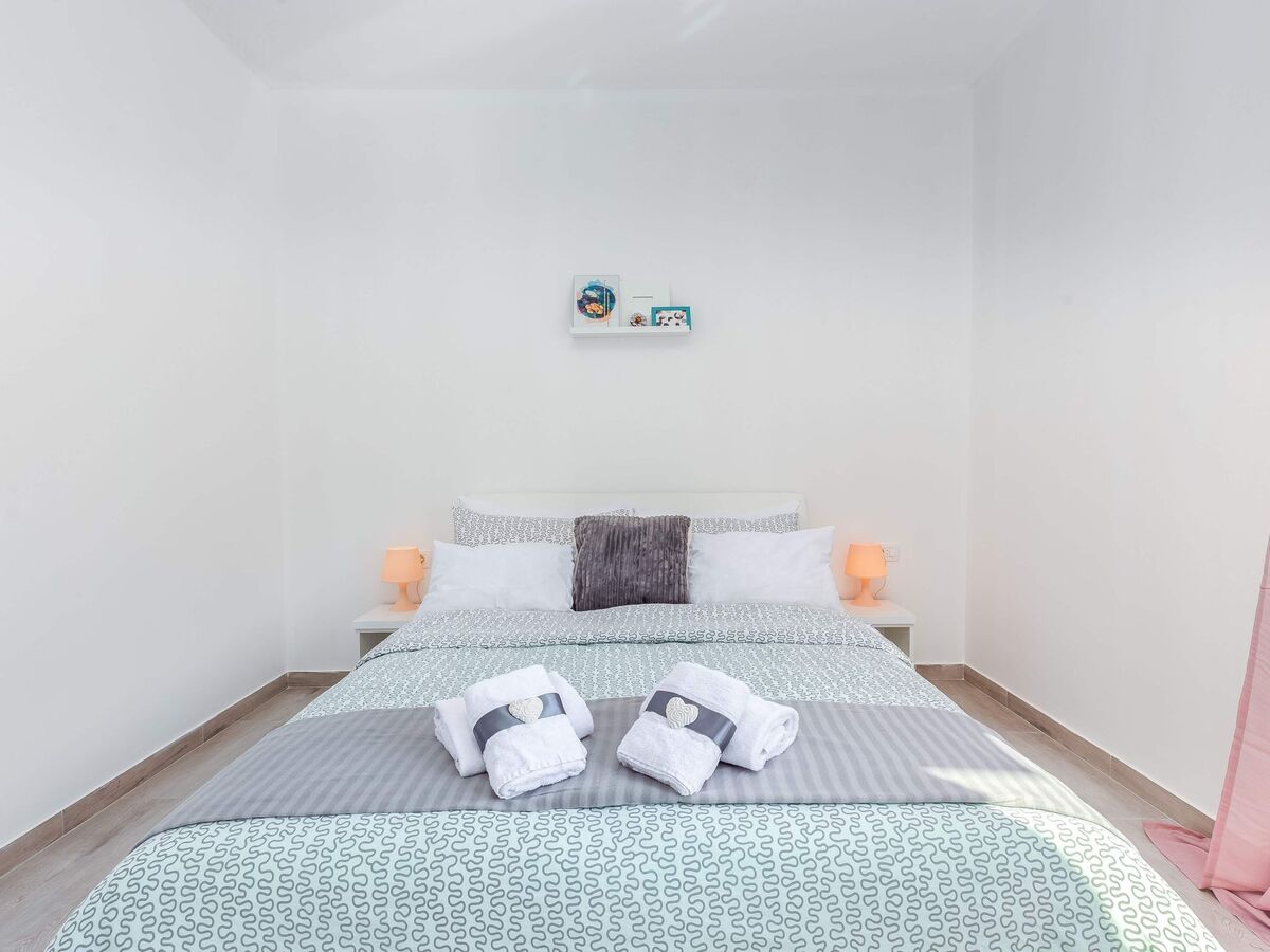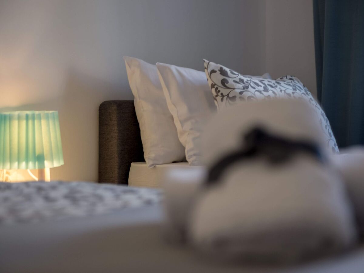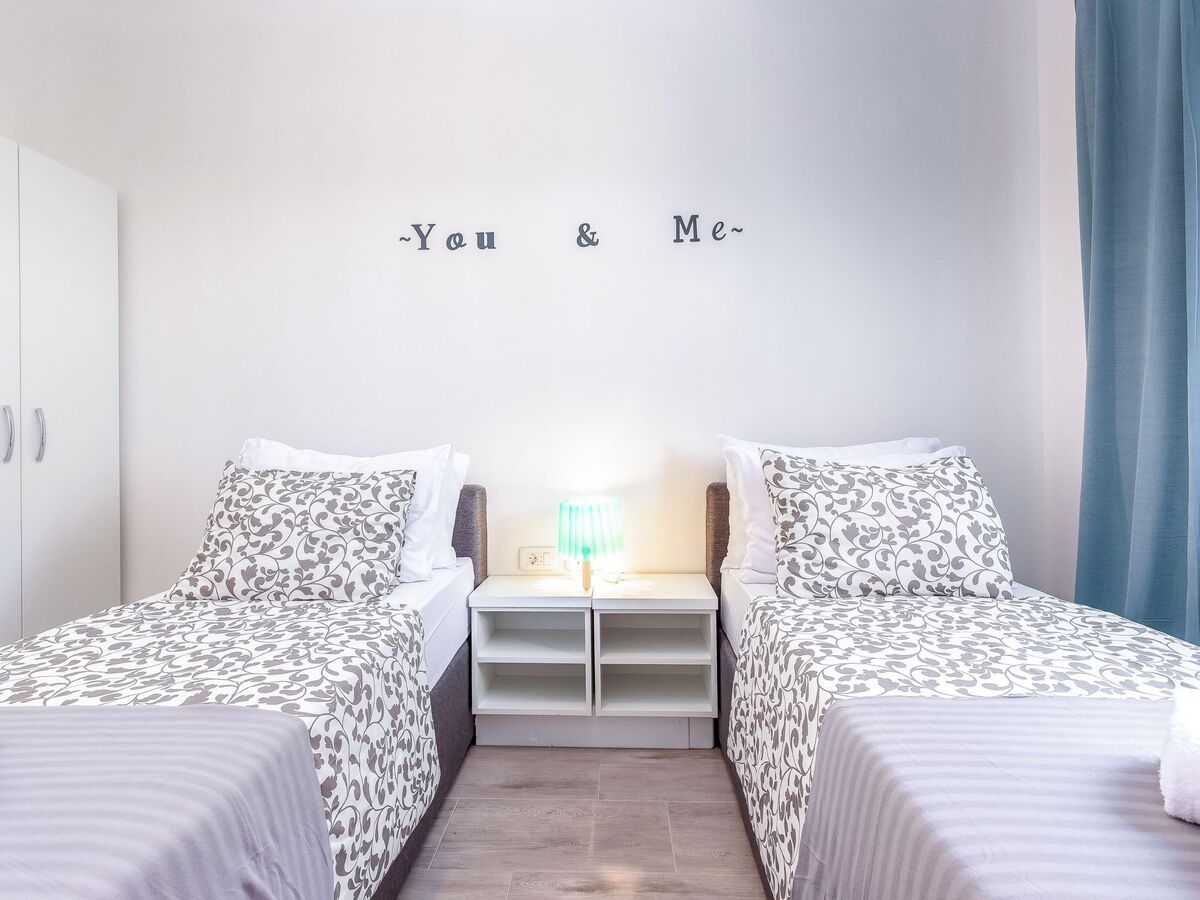 This apartment has 3 bedrooms – one with a double bed and a balcony with beautiful sea views, one with a double bed, and one with 2 box spring beds.