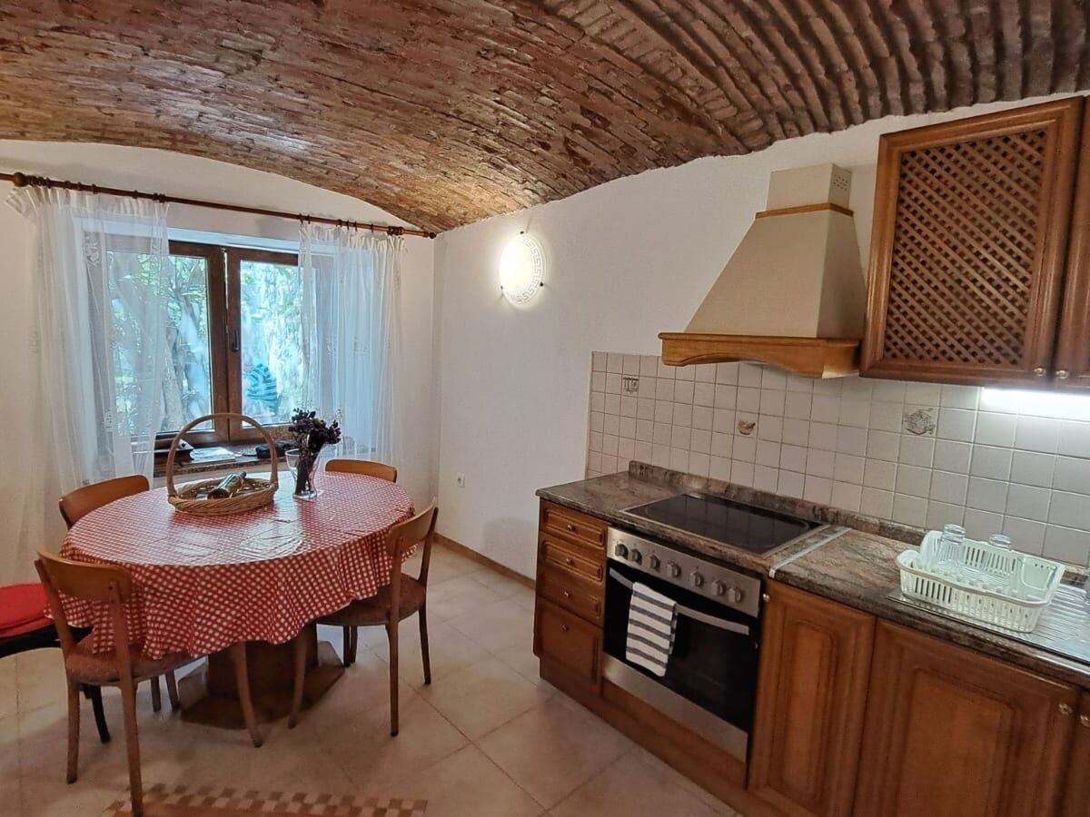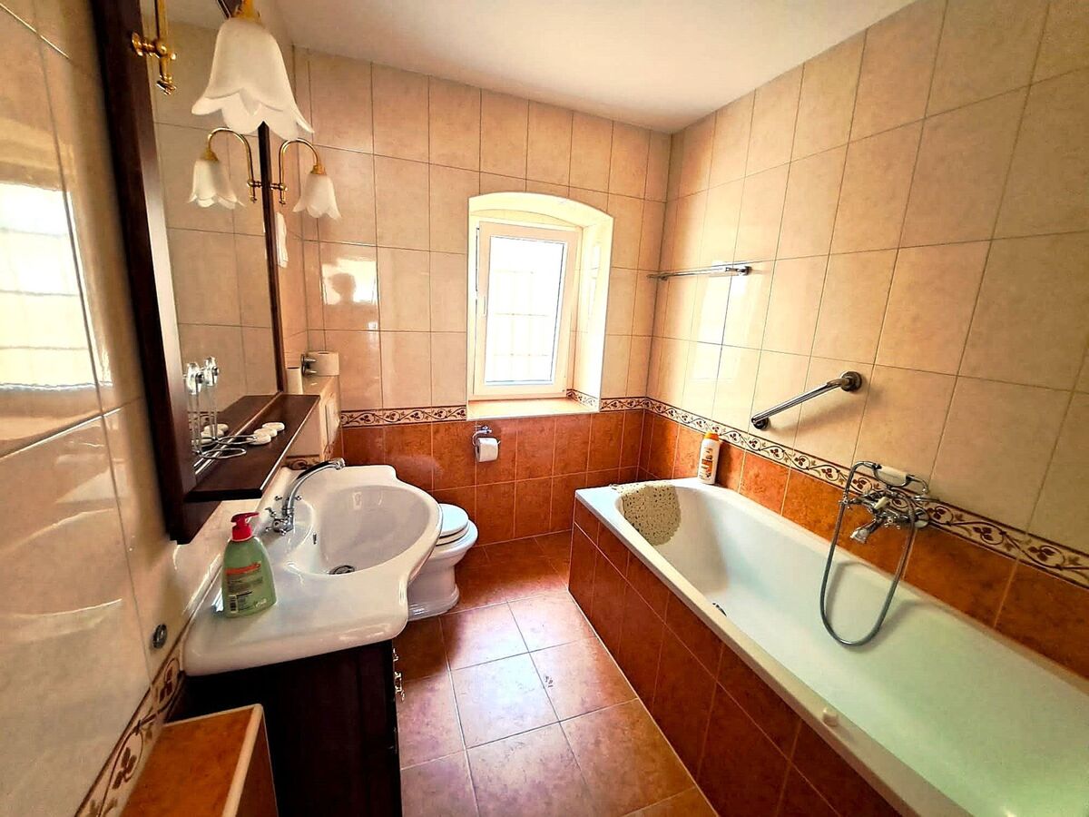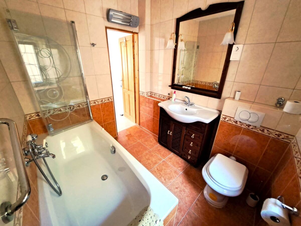 Construite dans un style traditionnel, la villa présente de charmants plafonds en briques au rez-de-chaussée et des murs épais qui gardent naturellement l'intérieur frais en été.