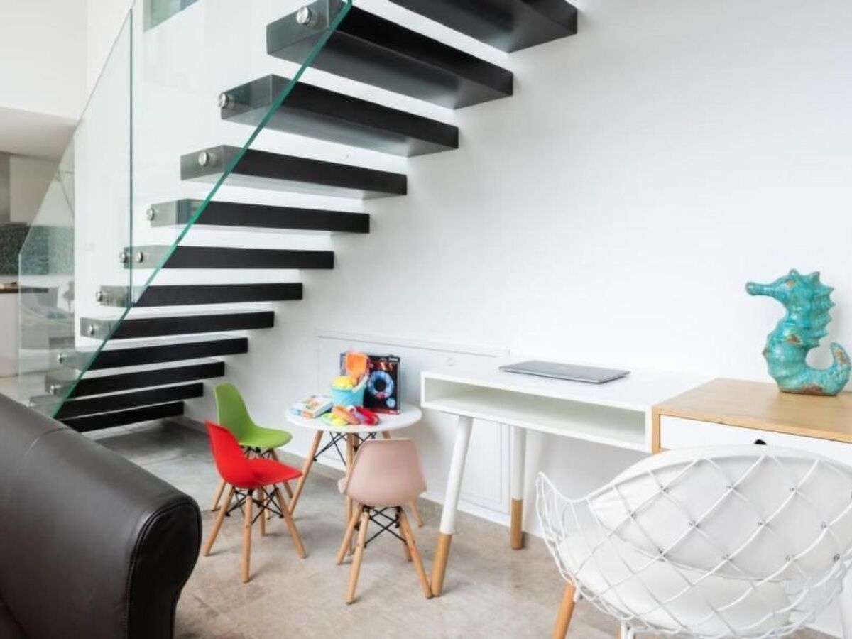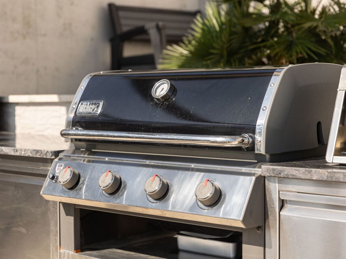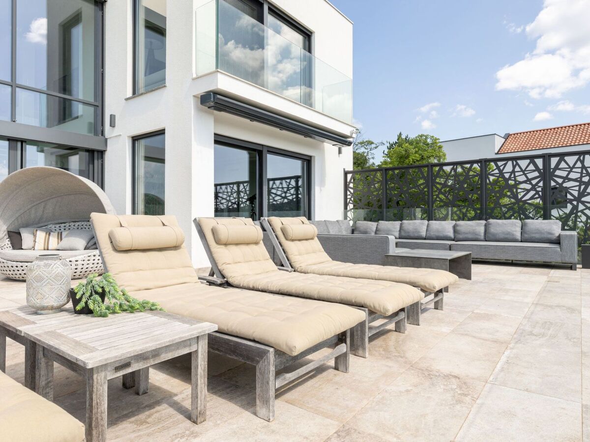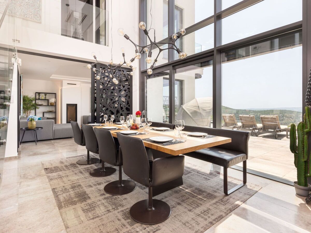 Huge dining table and outdoor kitchen with gas barbecue on the extra-large sun terrace.