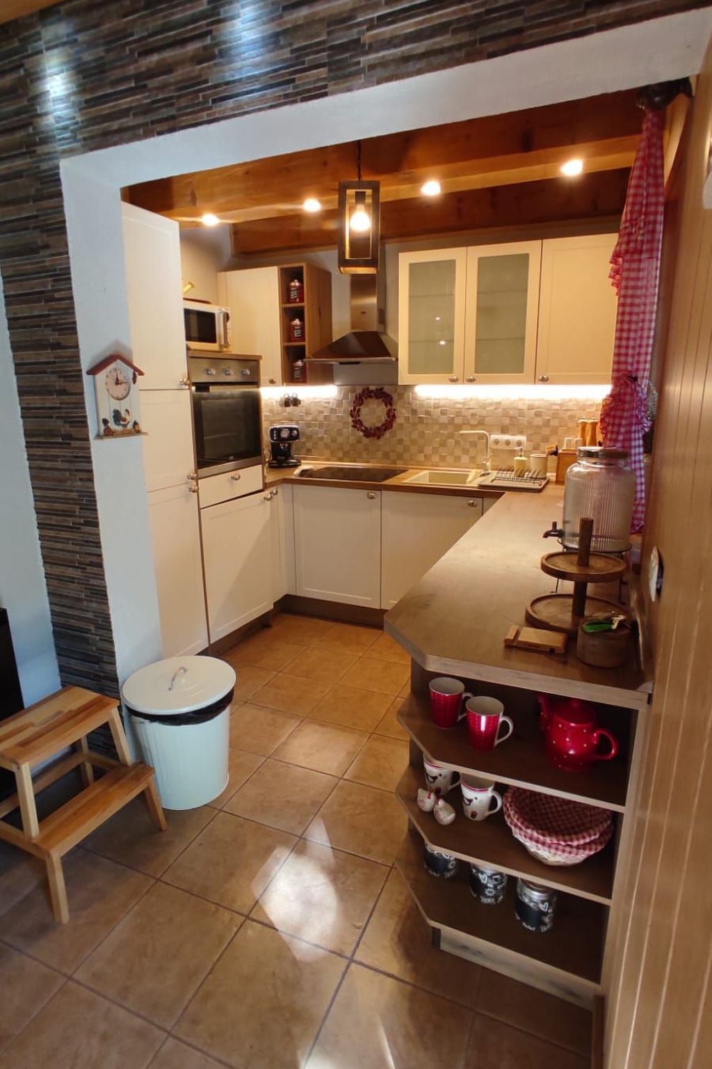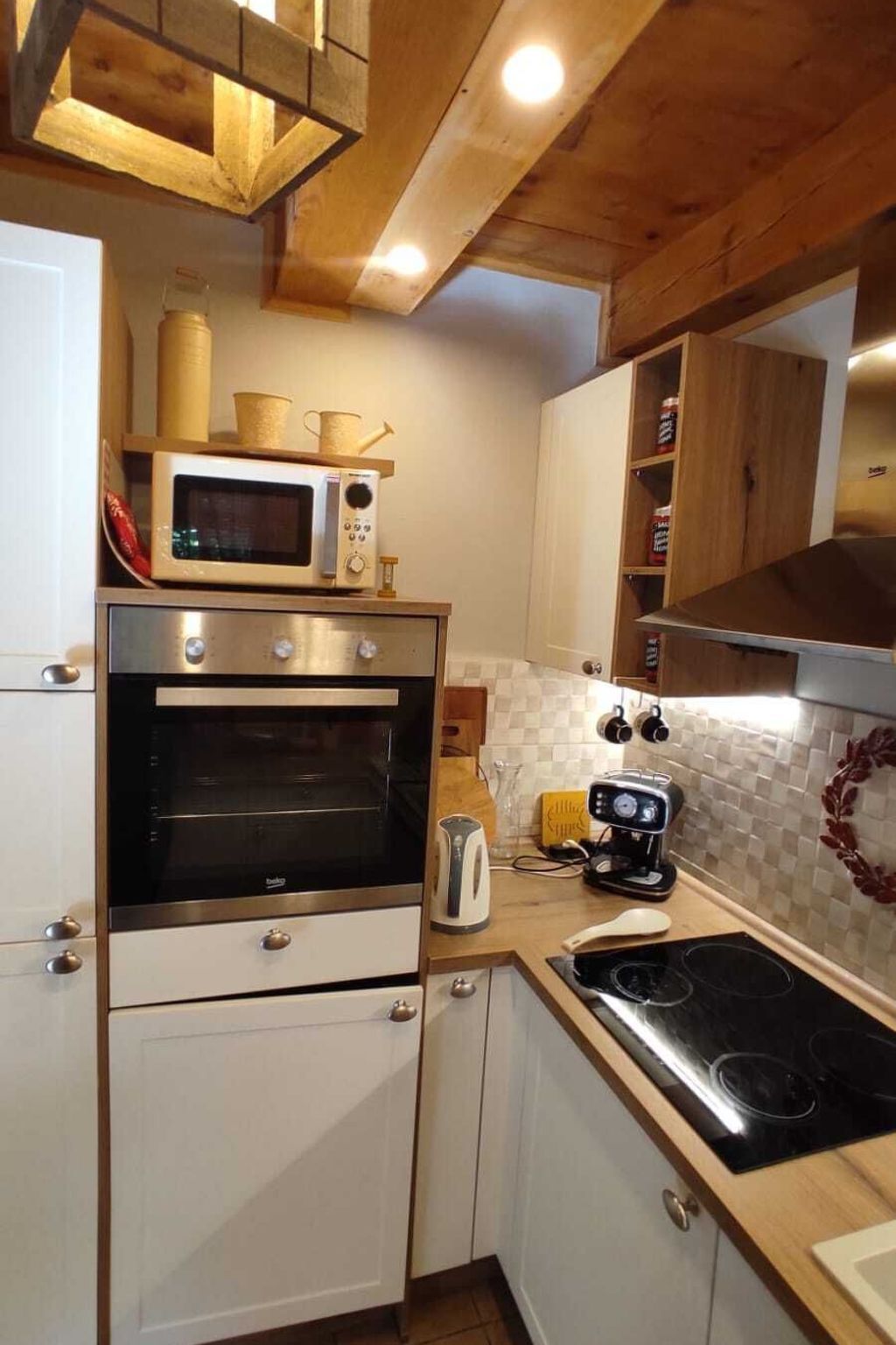 The kitchen, equipped with an induction hob, a capsule coffee machine and a dishwasher, makes it easy to prepare your meals.