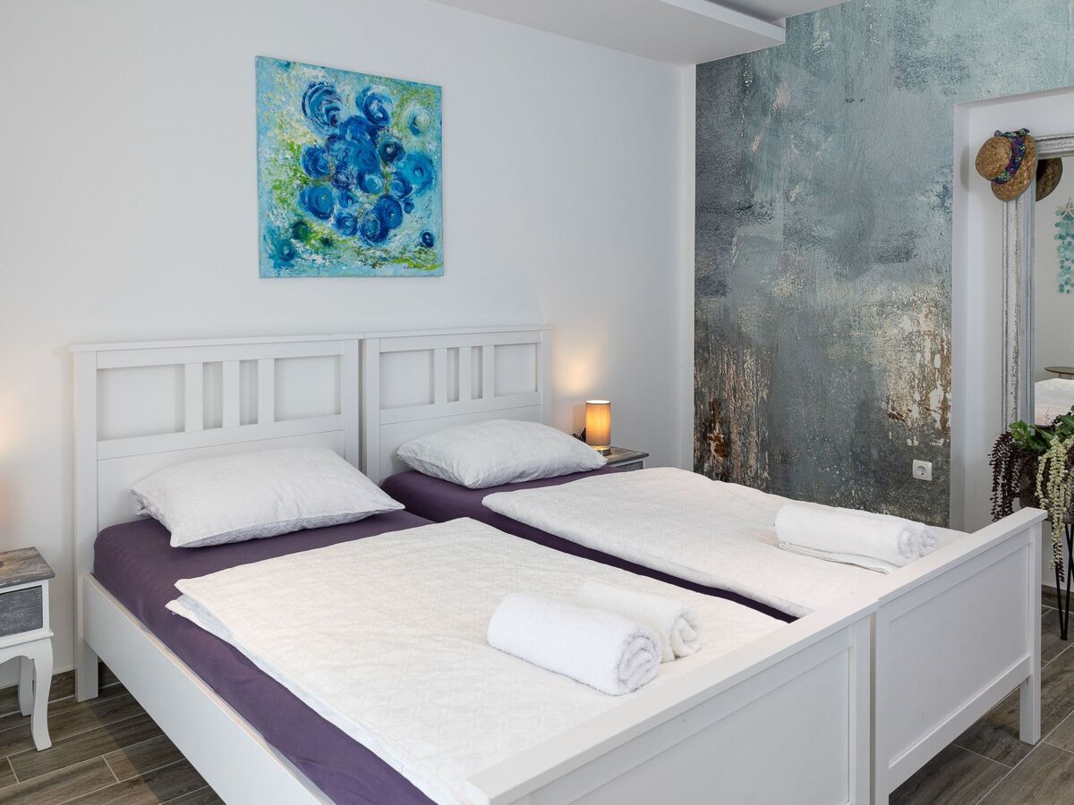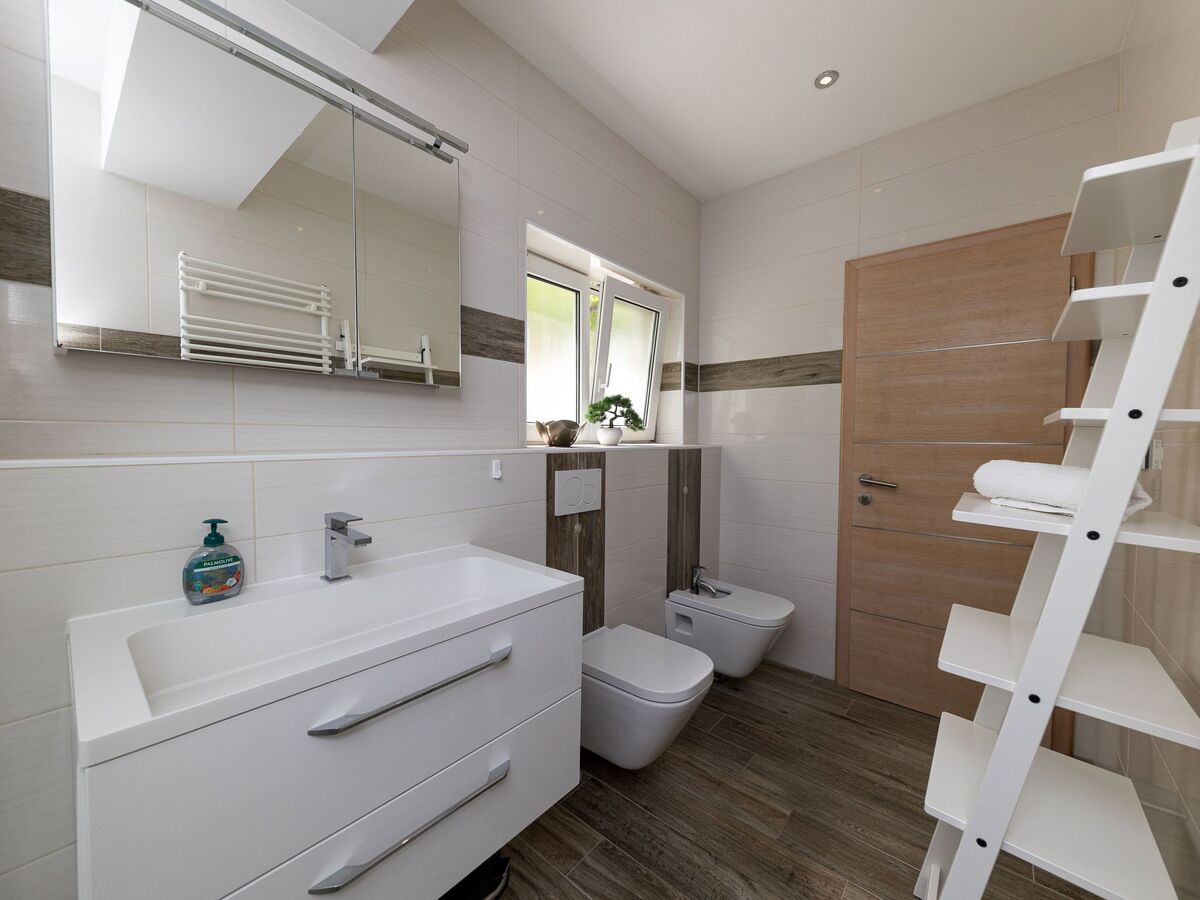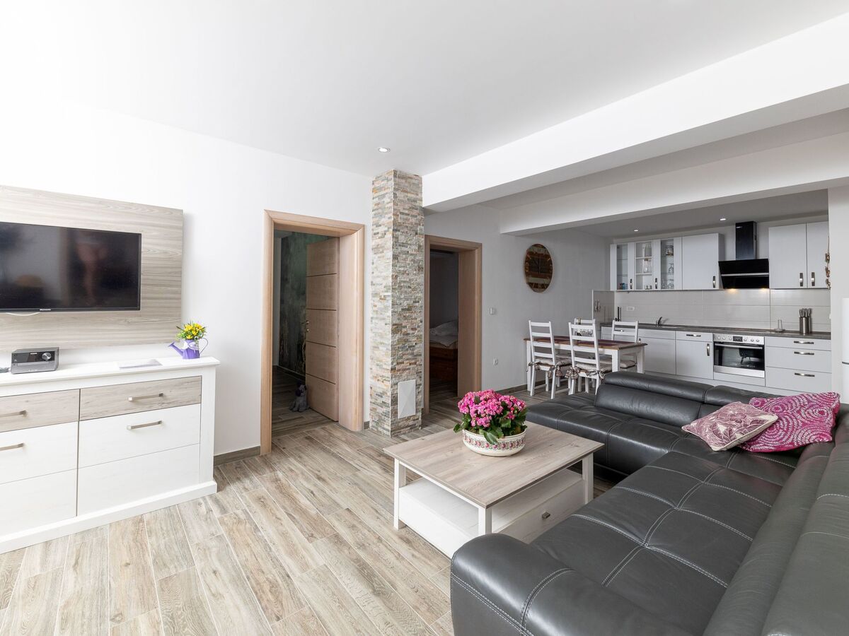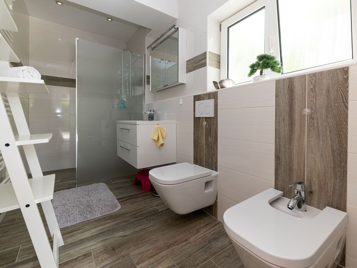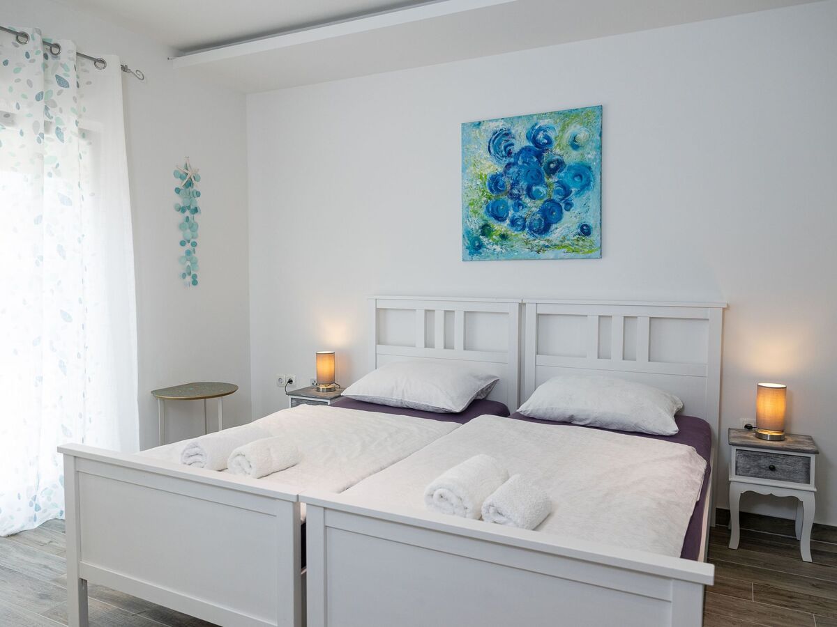 In our beautiful holiday home there is a 3-room flat (2 bedrooms, 1 living room with open-plan kitchen and 1 bathroom) on the ground and first floor, each with 90 m² on the ground floor and 90 m² on the first floor.