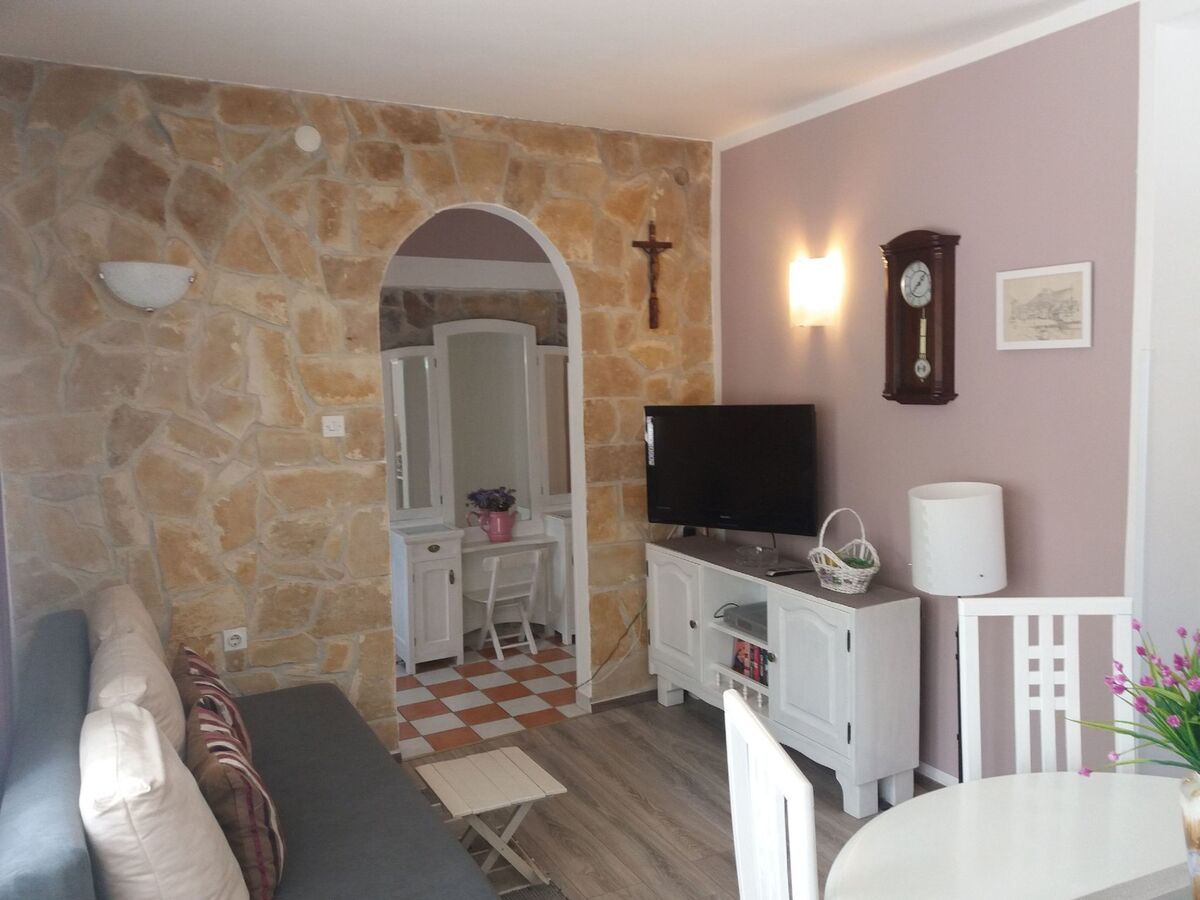 - Salon - canapé convertible en canapé lit pour deux adultes.