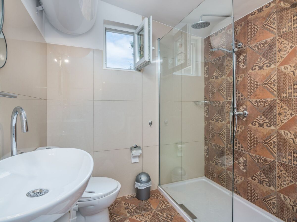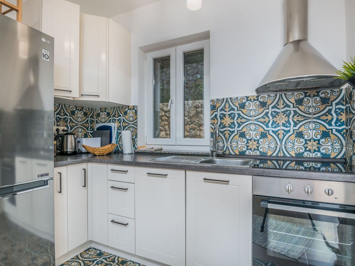 The gorgeously landscaped outdoor area welcomes you with enchanting stone cascades and Mediterranean vegetation: Trees of olive, fig, mandarine, lemon, pomegranate, and bushes of laurel, basil, lavender, rosemary and strawflower.