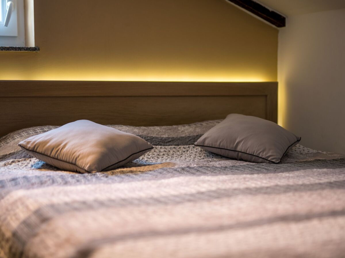 Two of the four bedrooms are furnished with a 180 x 200 cm double bed, the other two have two 90 x 200 cm single beds each which you can pus together to make a double bed.