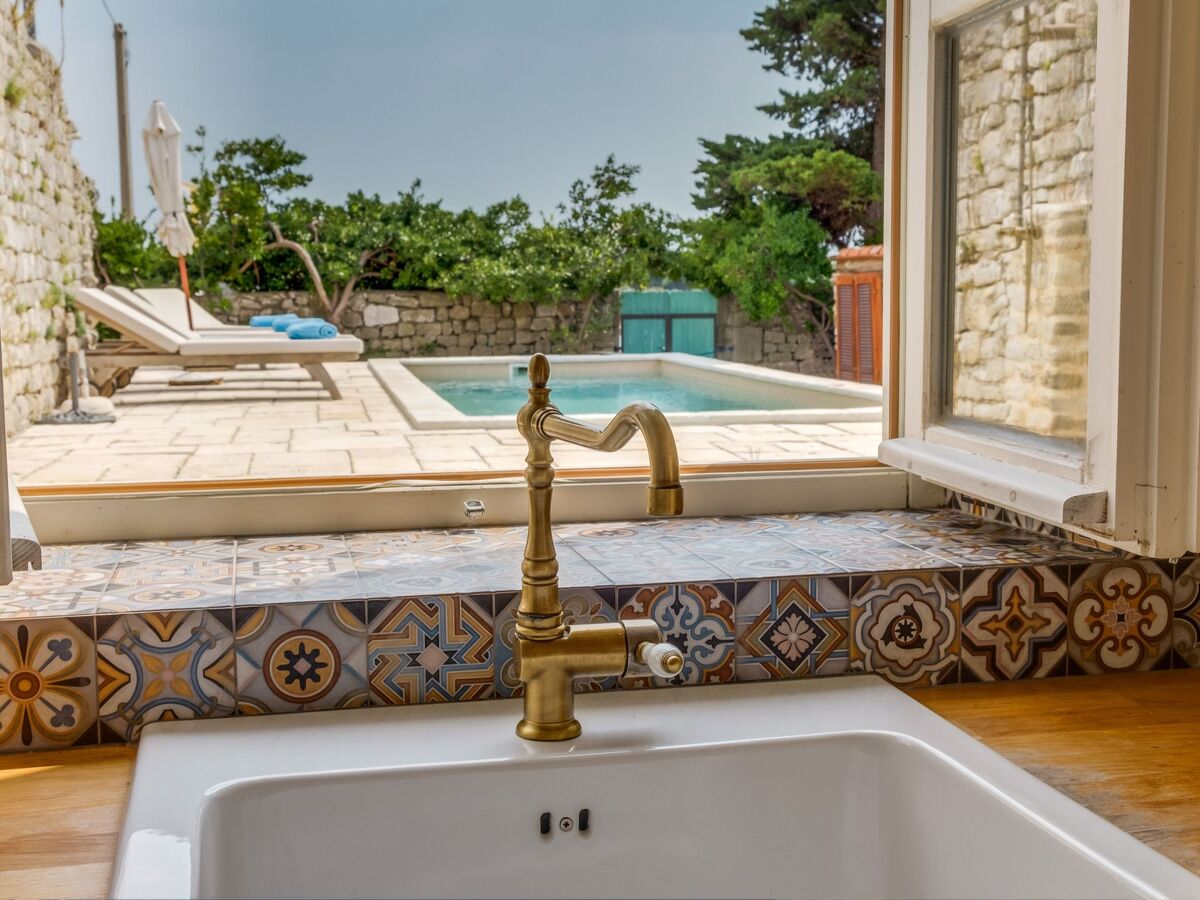 Cette maison de vacances de deux étages avec jardin se trouve dans la ville antique d’Osor sur l‘île de Cres.