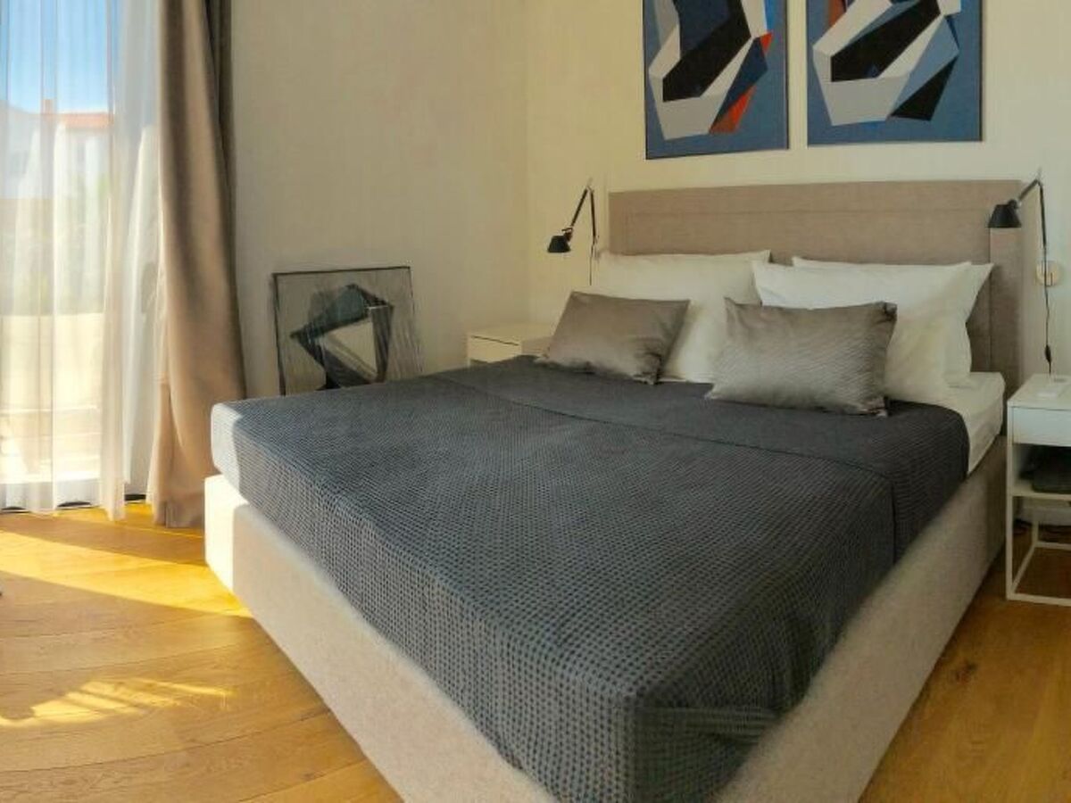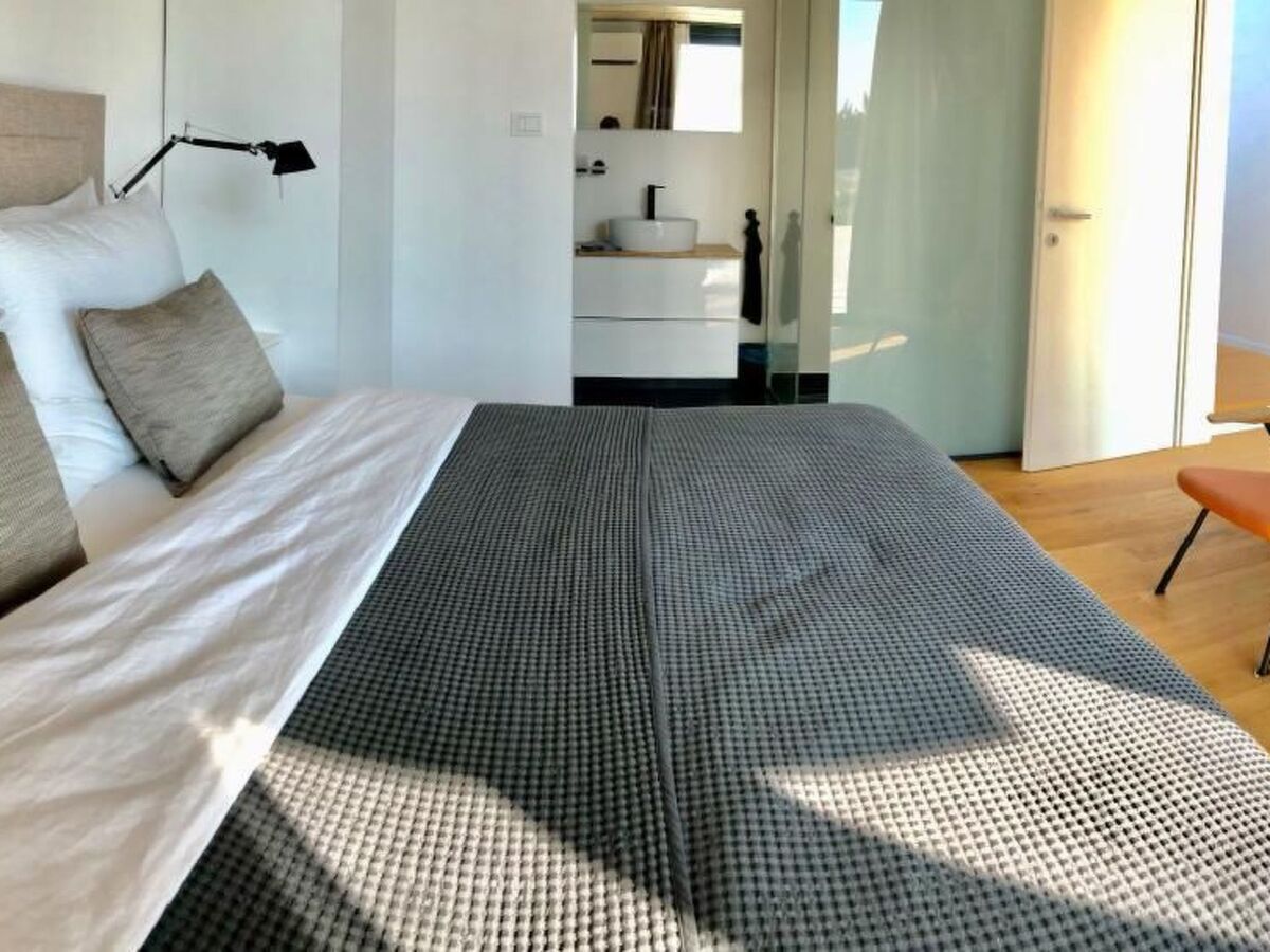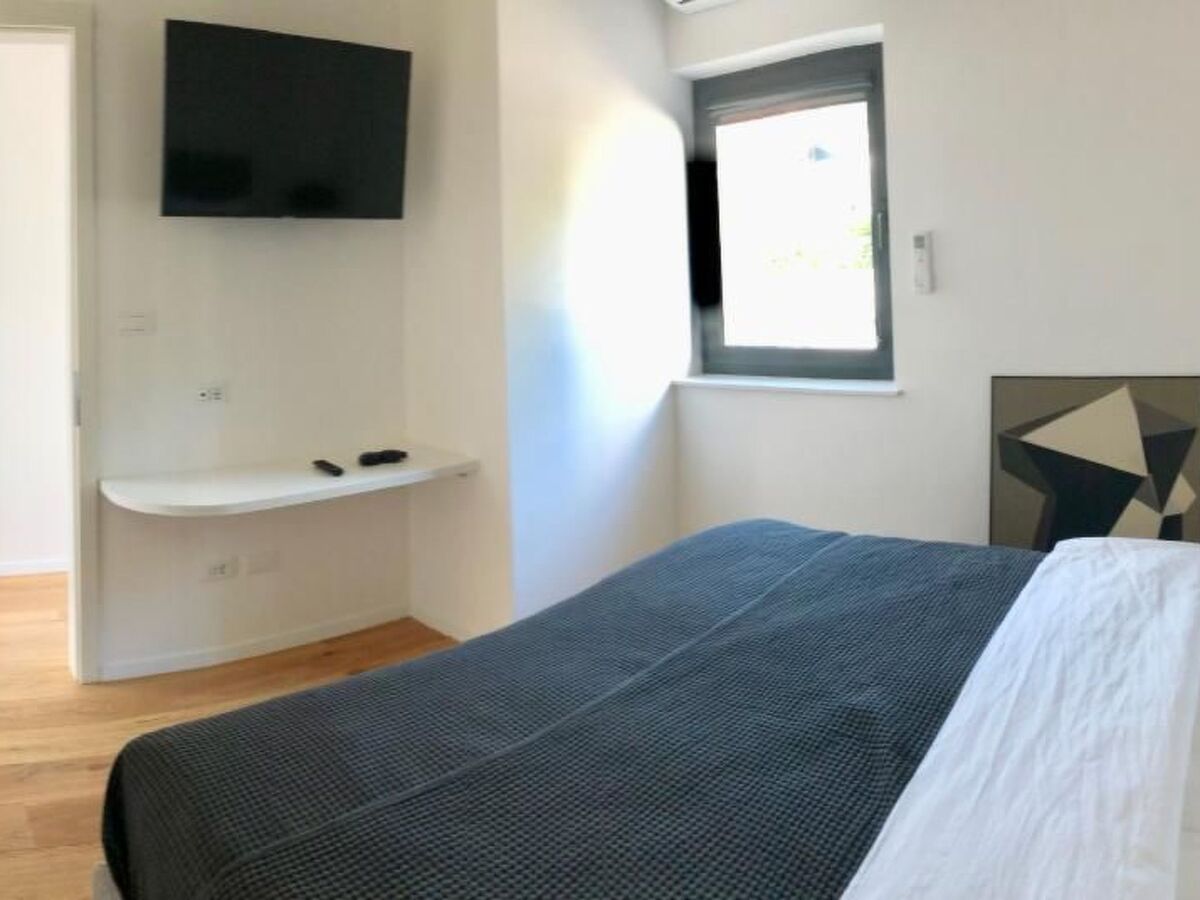 En outre, il y a une armoire, un bureau, une télévision LCD intelligente, des lampes conçues par Artemide La taille totale de la deuxième chambre est de 14 m2 La chambre a un grand lit double de 200 x 180 cm.