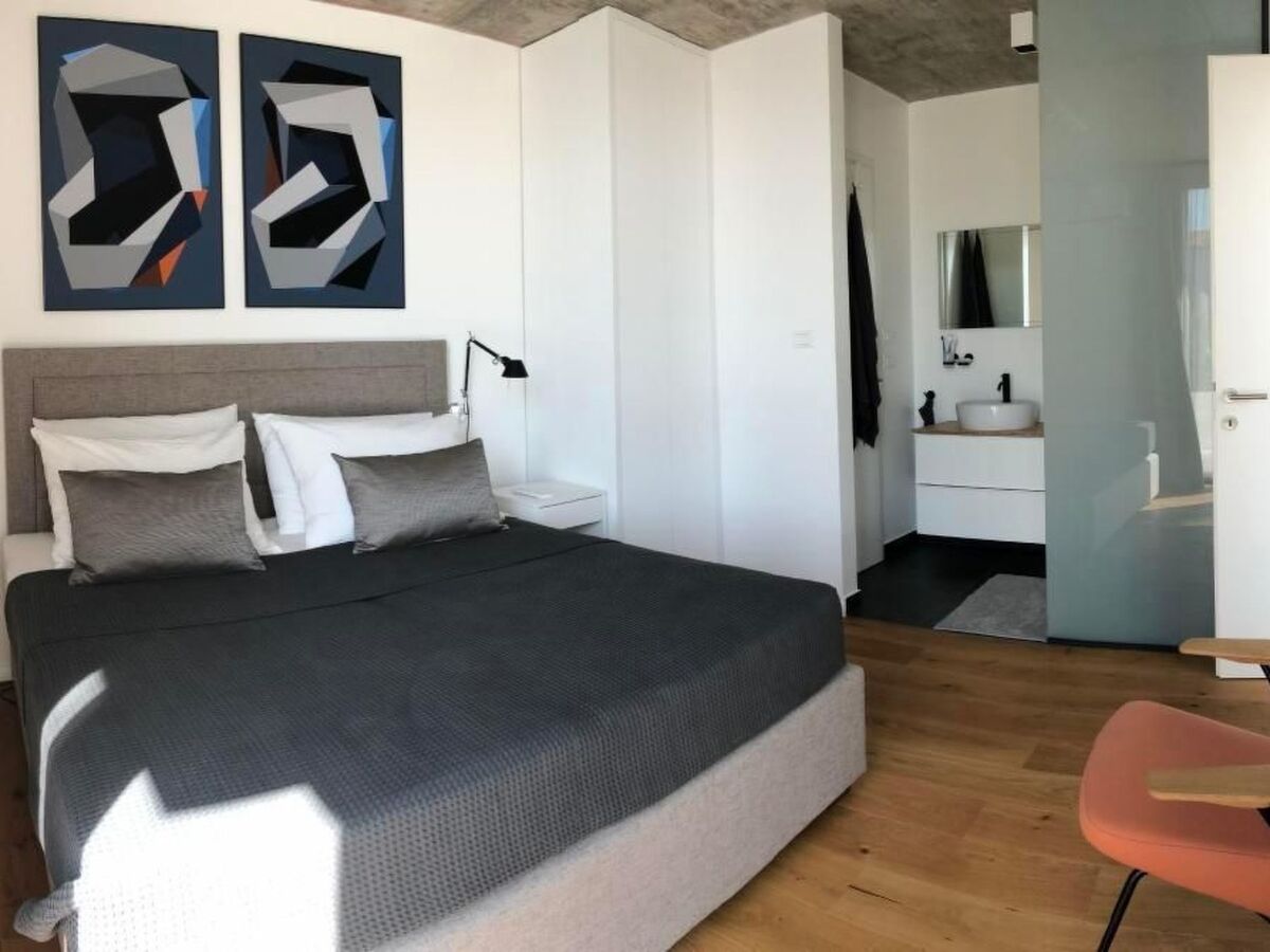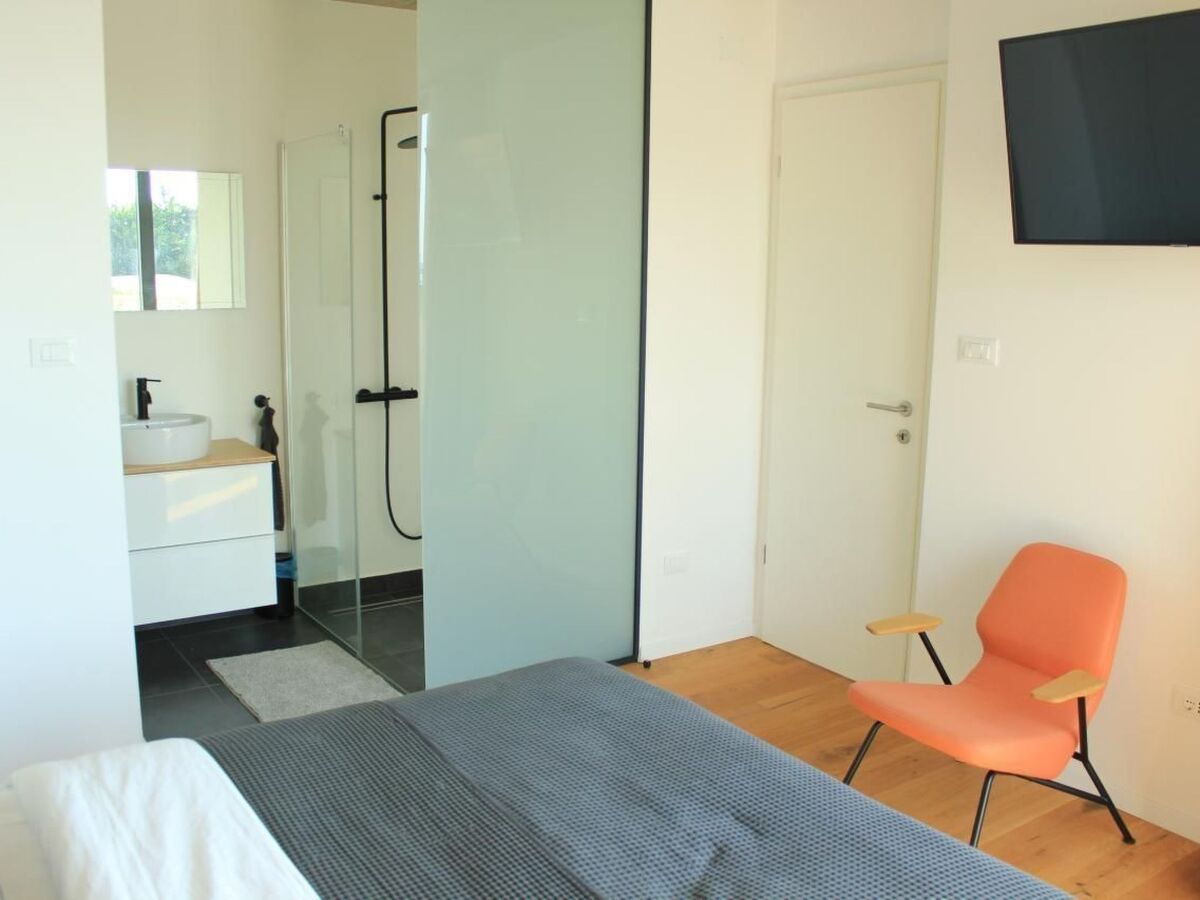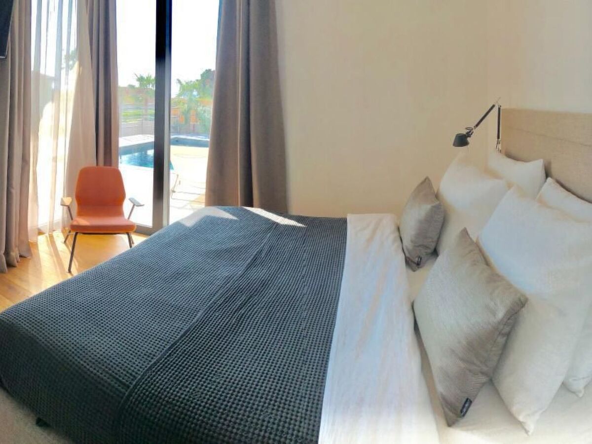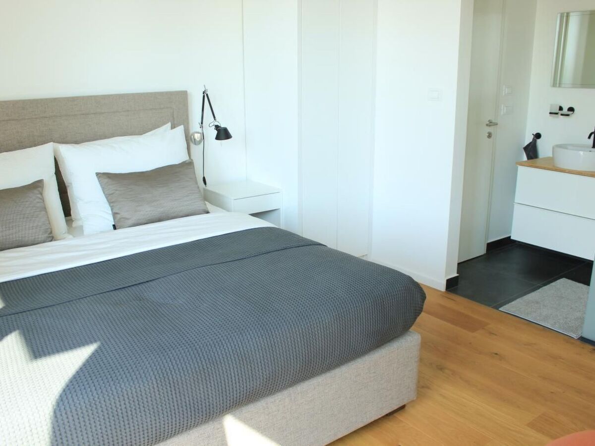 En outre, il y a une armoire, un bureau, une télévision LCD intelligente, des lampes conçues par Artemide La taille totale de la deuxième chambre est de 14 m2 La chambre a un grand lit double de 200 x 180 cm.