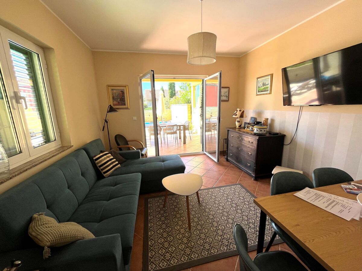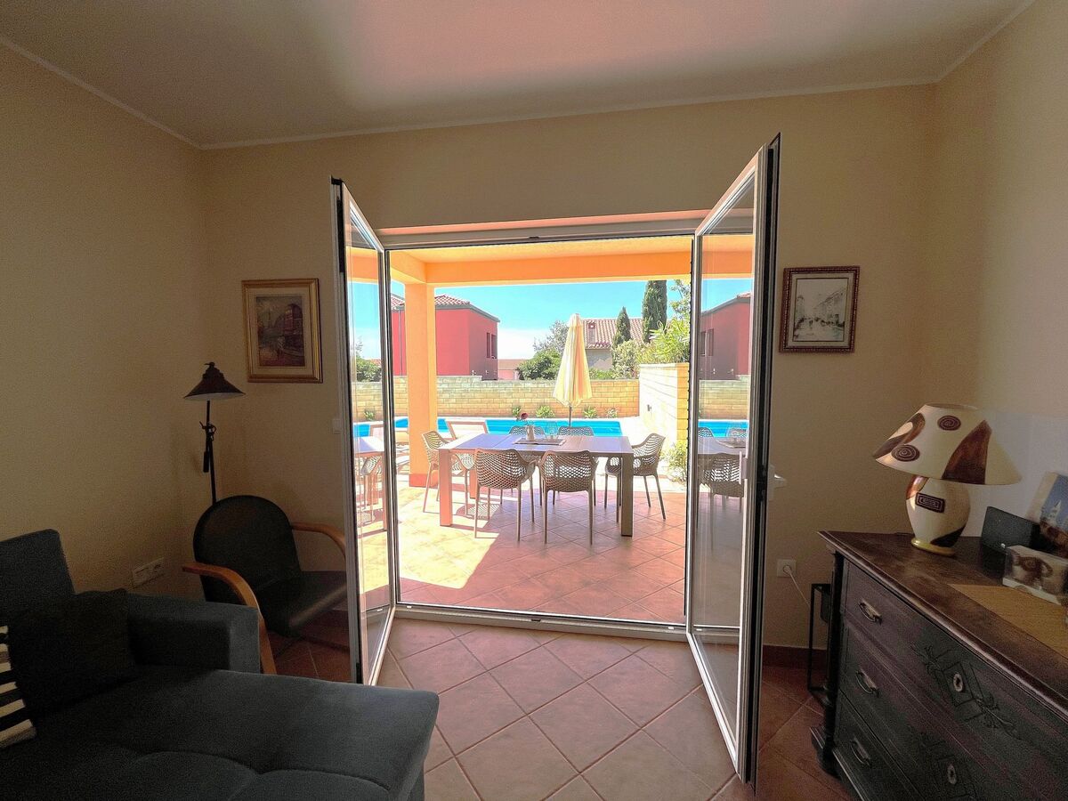 The open ground floor offers a living room with the kitchen, from where you have direct access to the pool and the covered terrace.