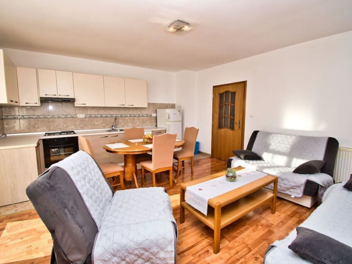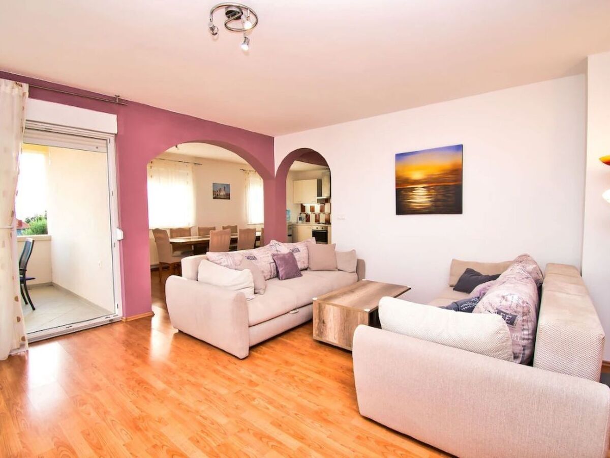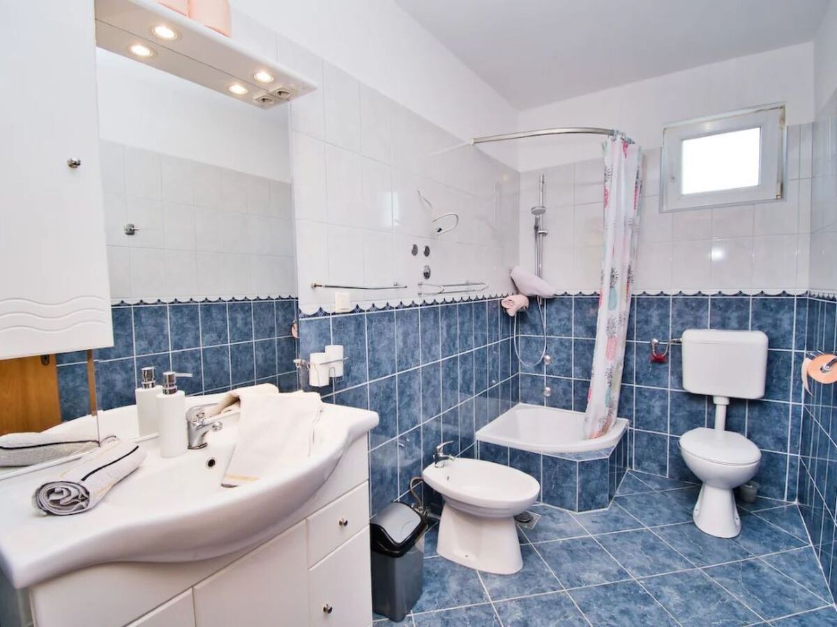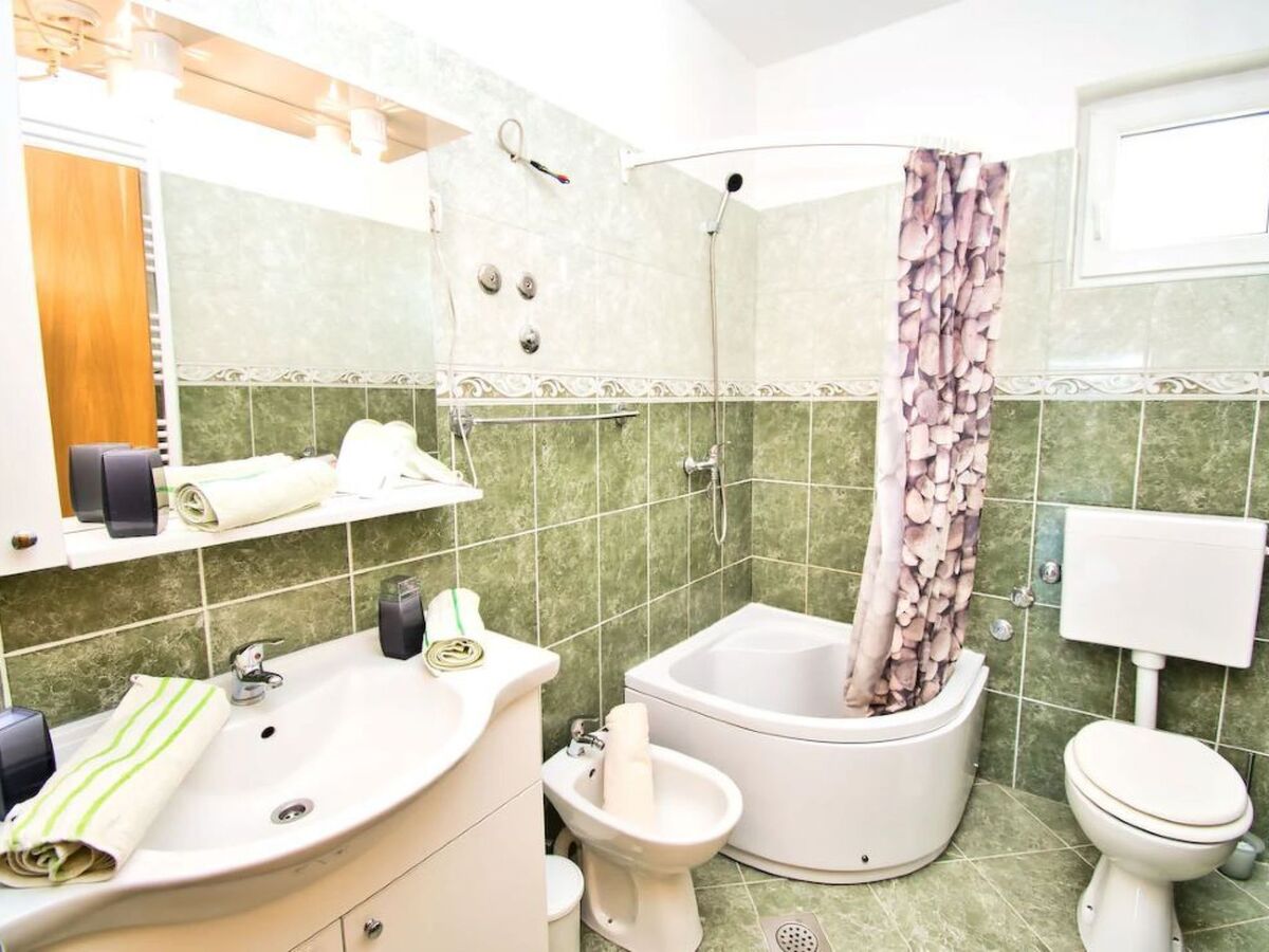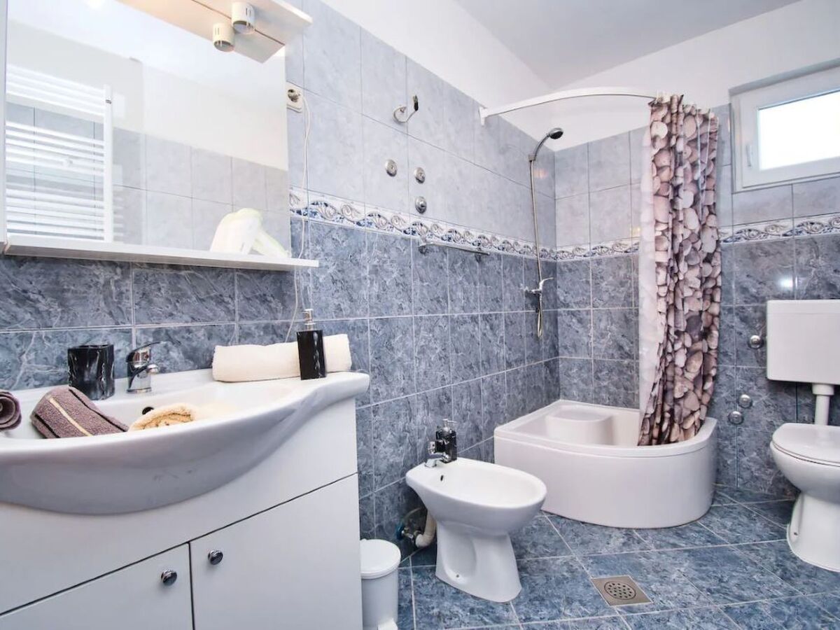 Very comfortable house consist of two flat, on the ground floor is 3 bedrooms,( one with double bed and two with two single bed) living room (with sofa for two persons if you need it),full equipped kitchen,2 bathrooms,terrace.