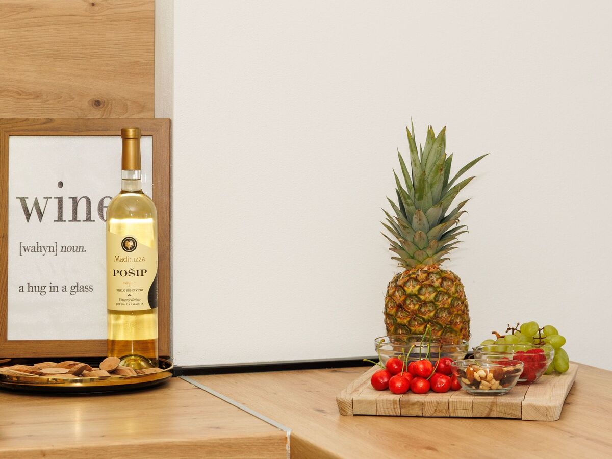 On cooler evenings, the fireplace invites you to spend cosy hours.