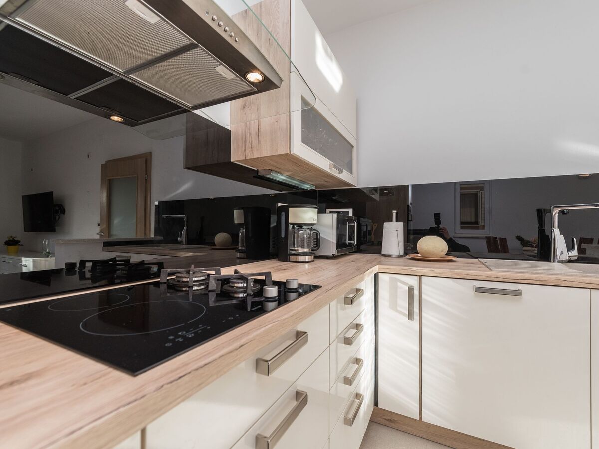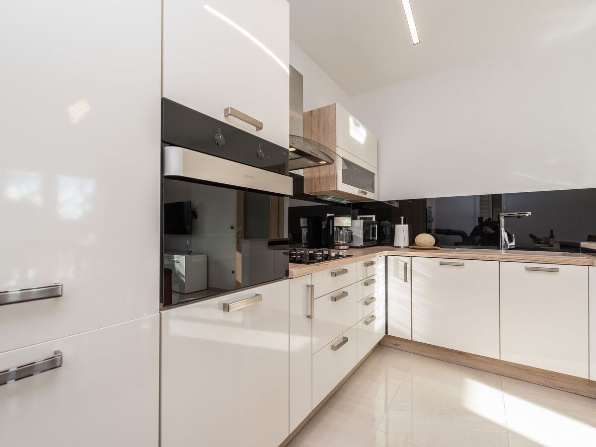 The ground floor is about 110 m² in size and comprises of the following rooms: A living room with a kitchen and dining room, a flat screen TV and a double sofa bed which is able stretch in bed 1,6 m x 1,9 m Kitchen is a fully-equipped kitchen with an oven, microwave, coffee machine and a dining area.