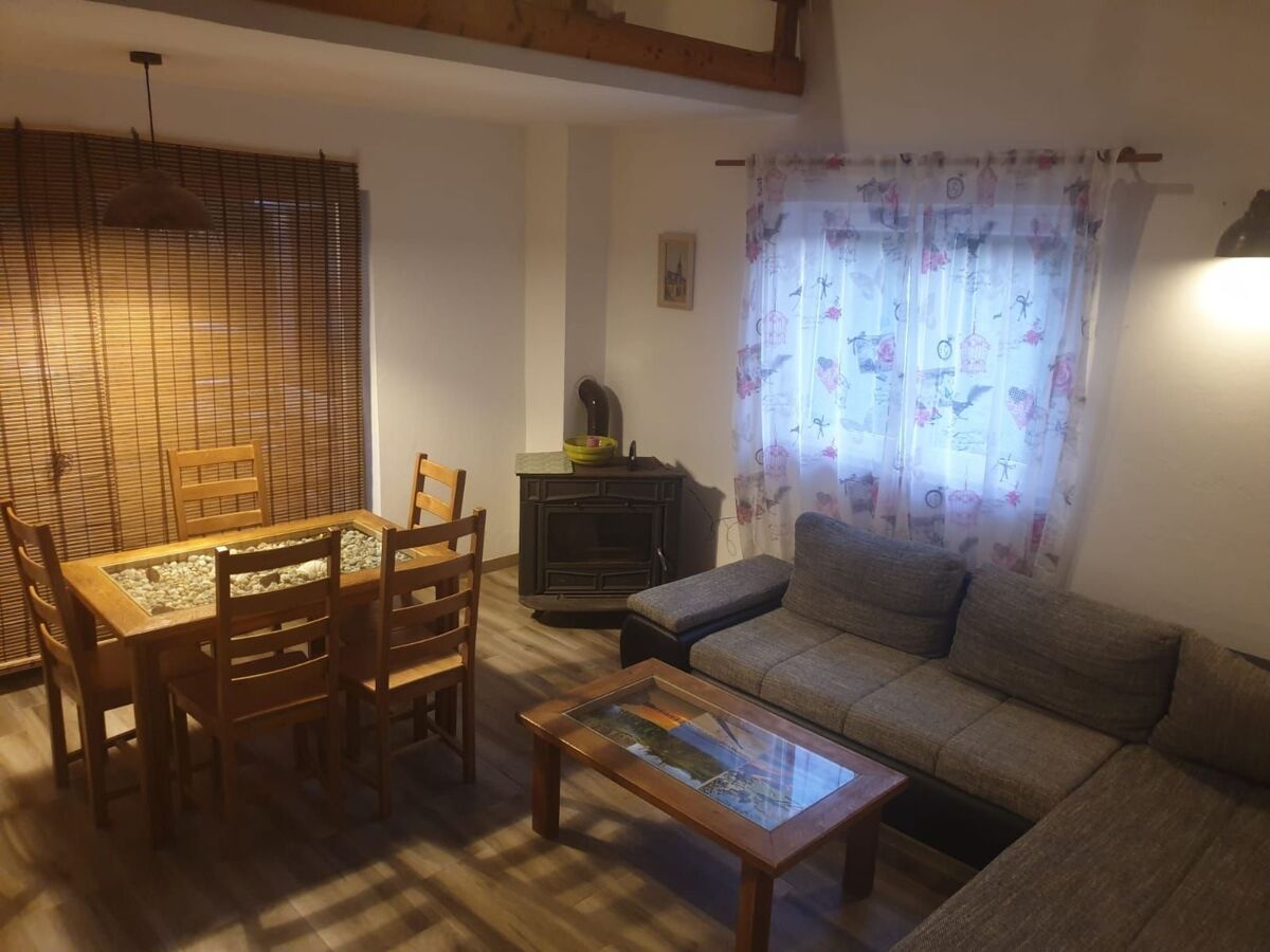 On y trouve le salon (canapé-lit pour deux personnes), une table à manger, une cheminée, un lecteur DVD et un téléviseur avec le satellite.