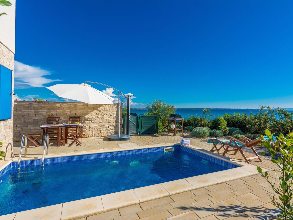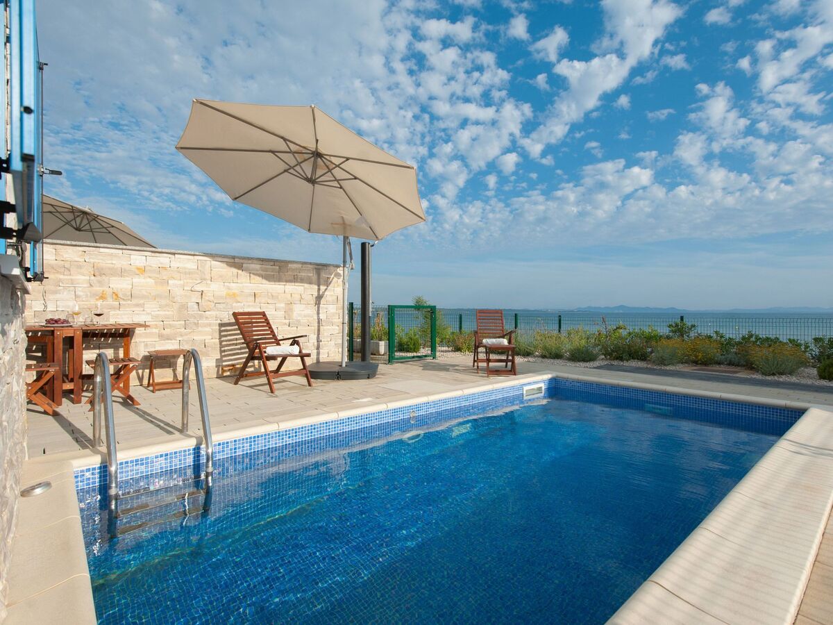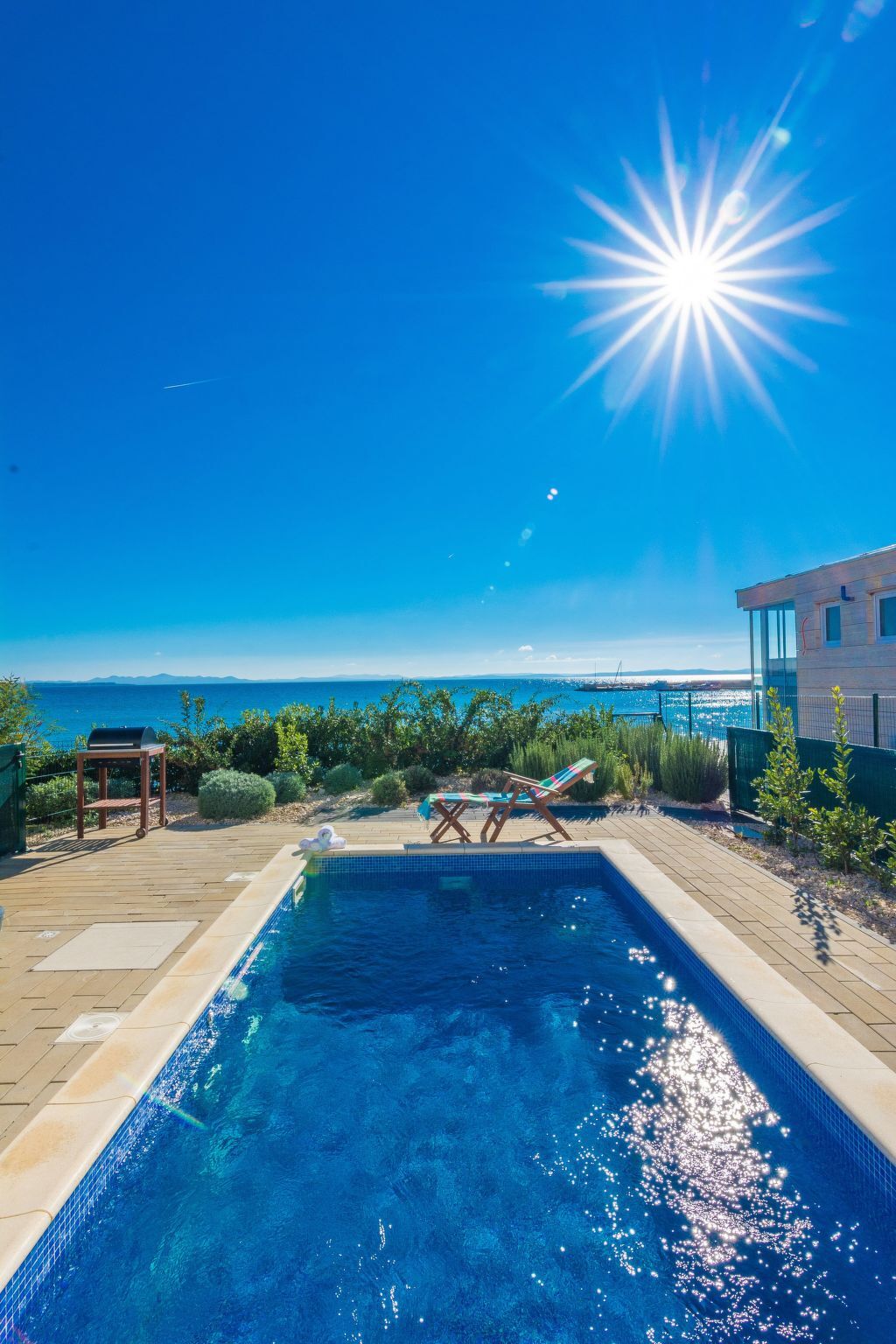 This top modern holiday villa enjoys a lovely location in the seaside town of Privlaka: it sits just a few metres from one of the best sandy beaches on the coast and overlooks the sea and features panoramic views of the islands.