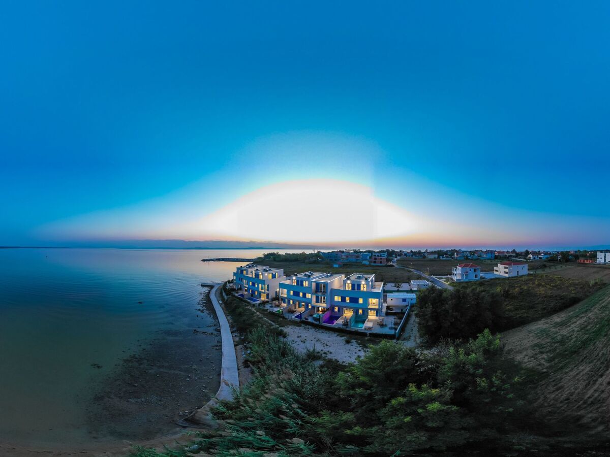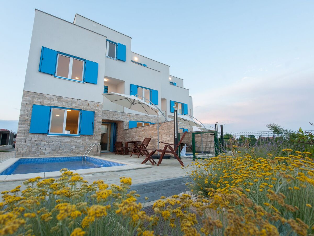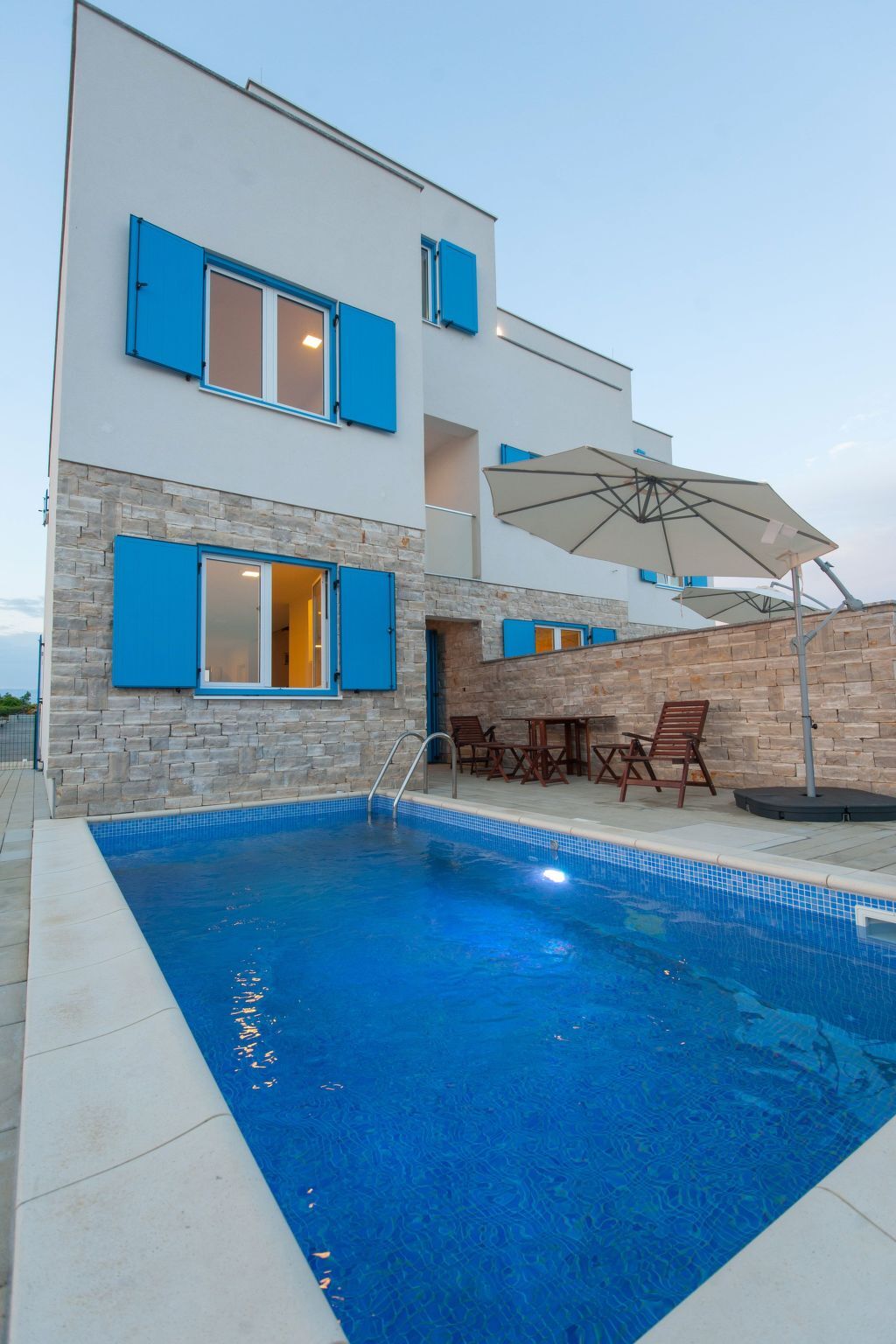 This top modern holiday villa enjoys a lovely location in the seaside town of Privlaka: it sits just a few metres from one of the best sandy beaches on the coast and overlooks the sea and features panoramic views of the islands.