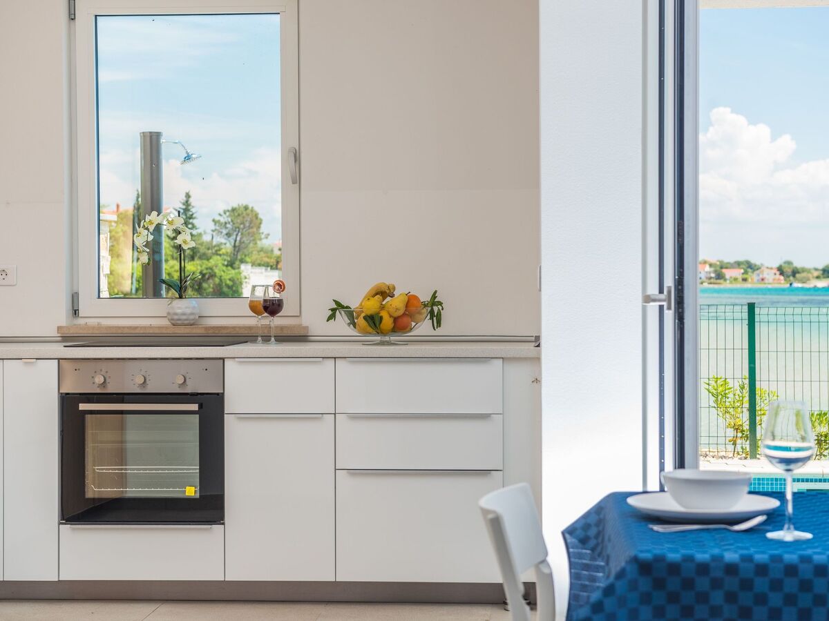 This top modern holiday villa enjoys a lovely location in the seaside town of Privlaka: it sits just a few metres from one of the best sandy beaches on the coast and overlooks the sea and features panoramic views of the islands.