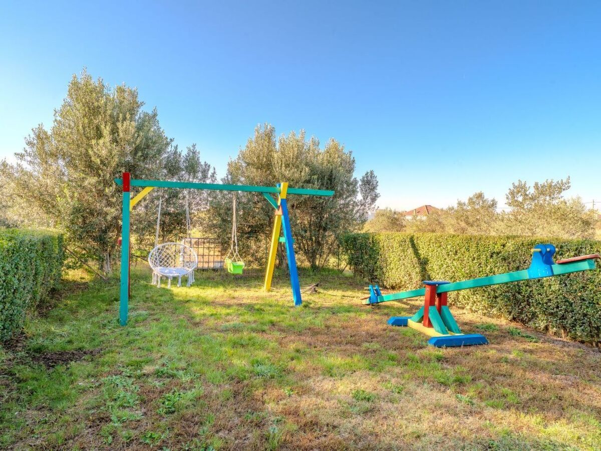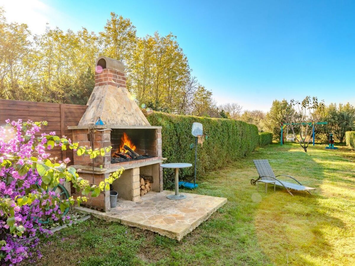 The property features a lush green yard that is perfect for children, with swings and a garden fireplace that invites guests to try their hand at preparing traditional Dalmatian specialties on the grill.