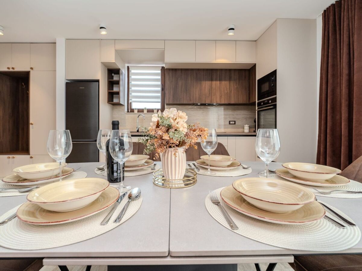 -Fully equipped kitchen (dishwasher, oven, microwave, coffee maker, etc.).