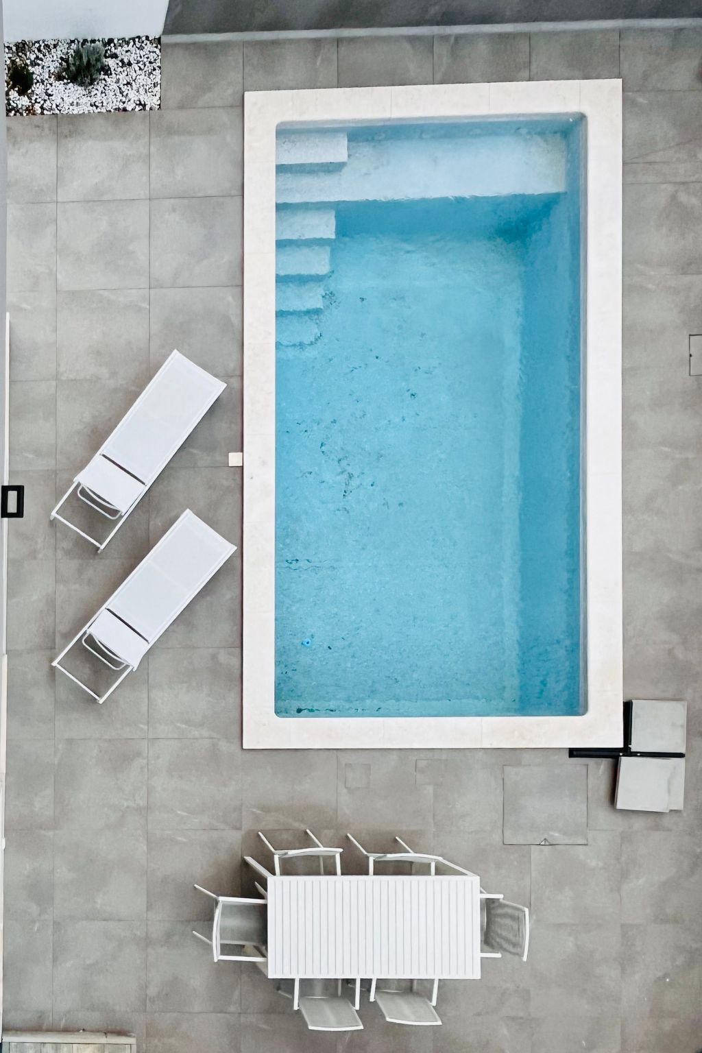 The stylish kitchen is a culinary haven, while outdoor amenities include a refreshing swimming pool and a grill.