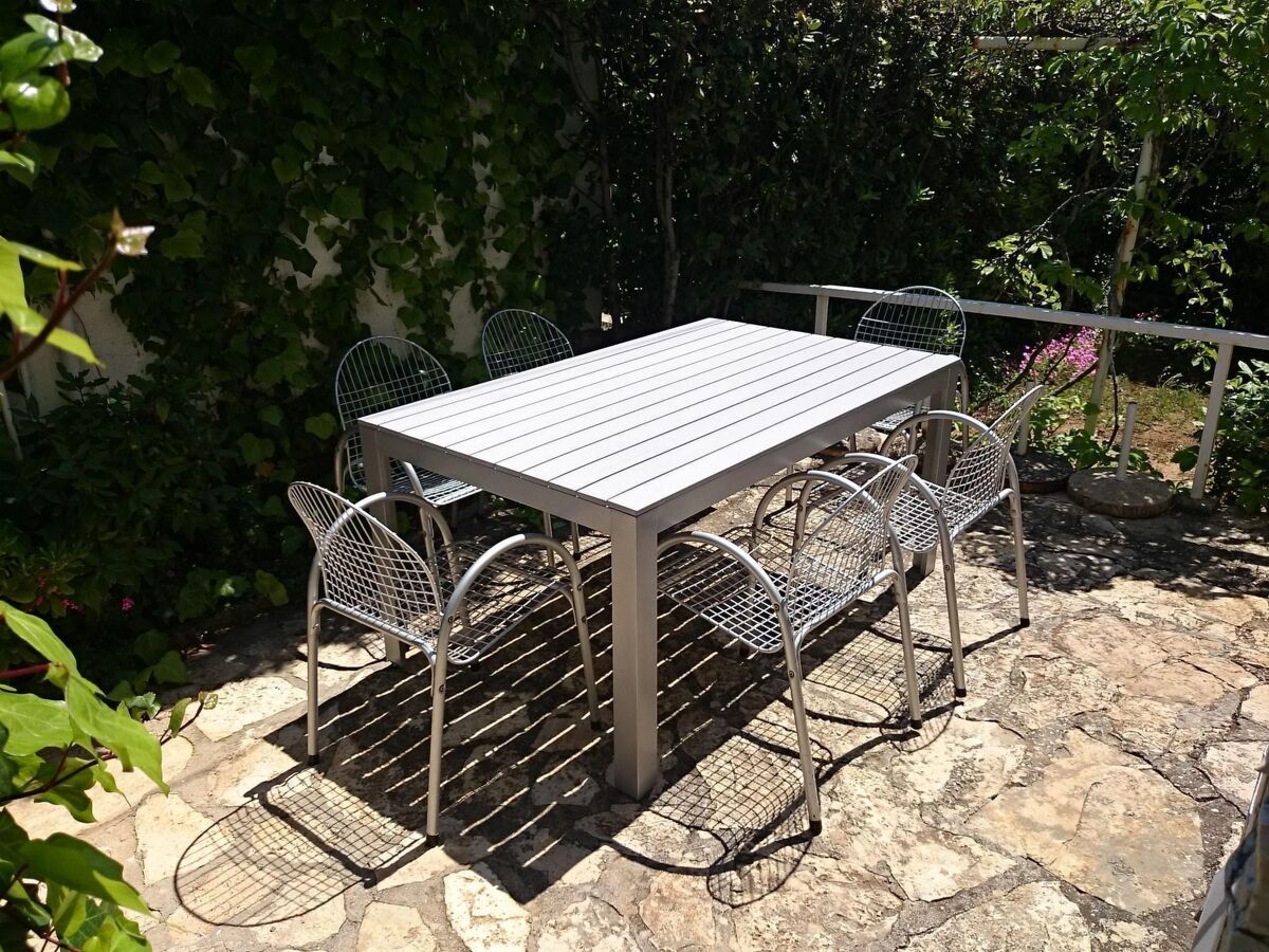 Si vous avez besoin d’une table de plus grande taille, vous trouverez, à l’ombre, une seconde table de jardin pour six personnes à laquelle vous pourrez prendre vos repas en commun.
