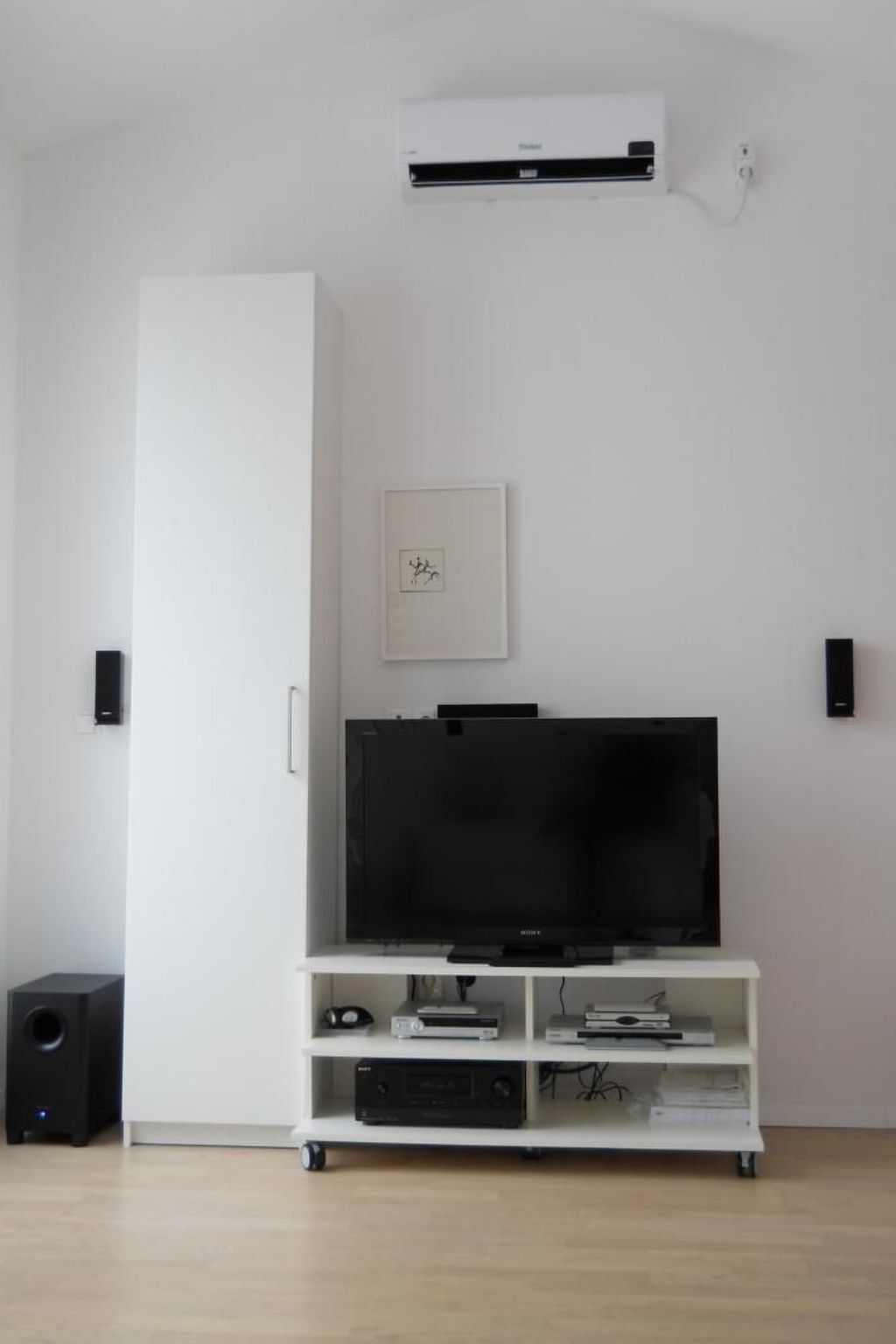 Les meubles de l'espace séjour sont de style moderne et chaque étage est pourvu d'un téléviseur.