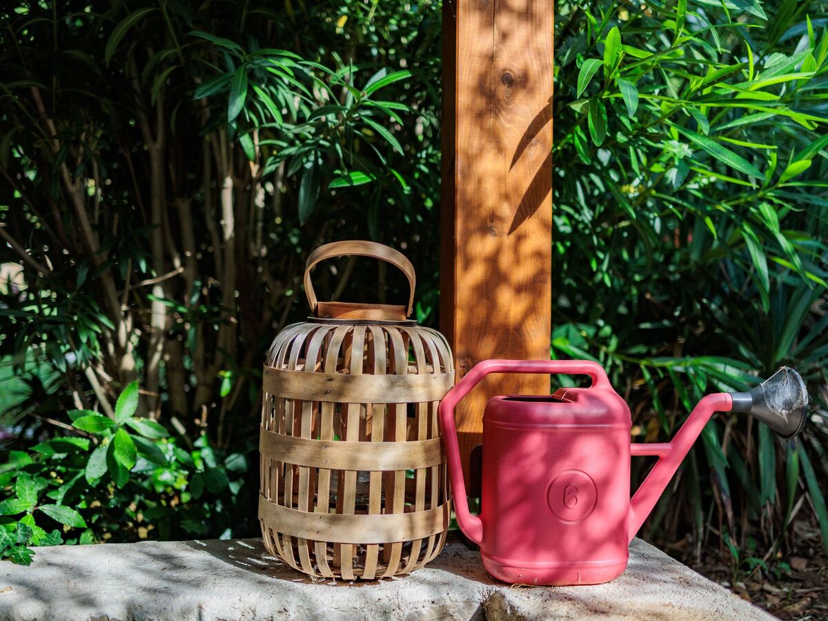 250 square meters large green garden with a outdoor shower planted with a Mediterranean herbs; lavender, oleander, rosemary, laurel, tangerine and olive trees is a great spot to hide during a hot summer afternoons.