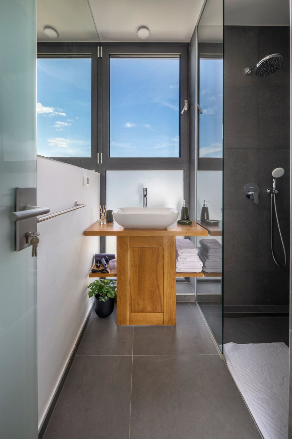 The highlight is undoubtedly the private infinity pool, a haven for relaxation and enjoyment, flanked by sun loungers for basking in the sun.