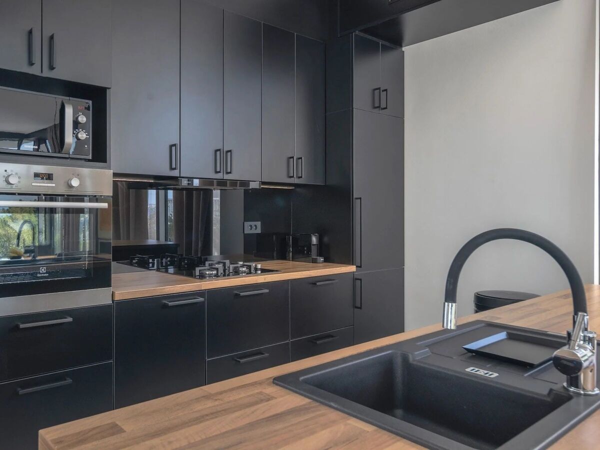 The kitchen is a haven for culinary enthusiasts, fitted with a dishwasher, coffee machine, and electric kettle, alongside a cozy fireplace that adds warmth and ambiance.