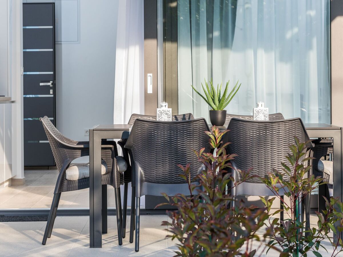 The terrace and balcony invite you to spend time outdoors, whether for meals with a fresh sea breeze or relaxing with a book and a cup of coffee.