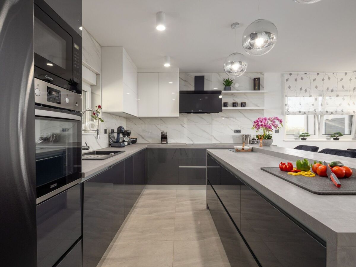 The villa's state-of-the-art kitchen, complete with a dishwasher, coffee machine, and electric kettle, makes meal preparation a breeze.