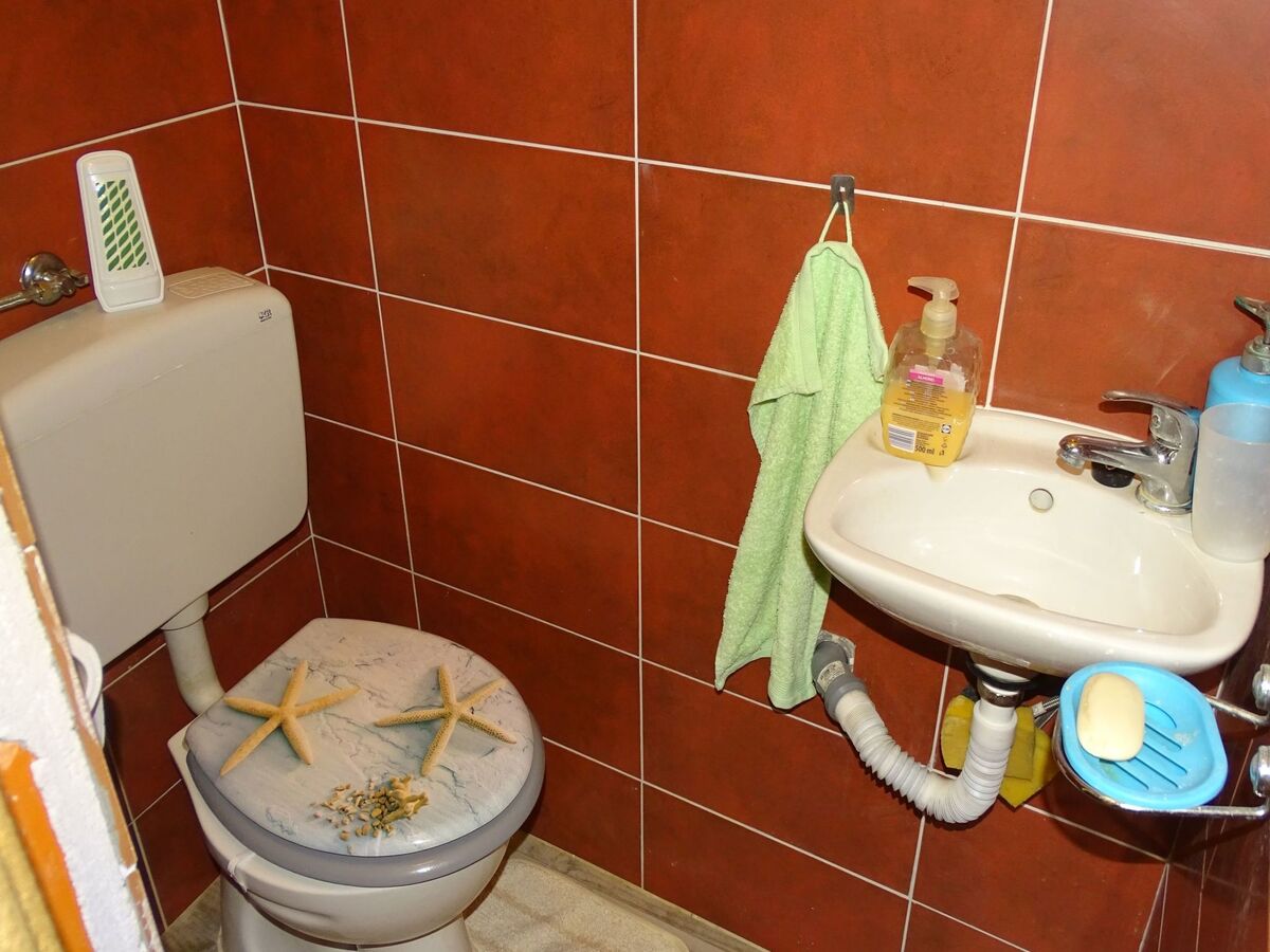 The single bathroom, complemented by an extra toilet, ensures convenience for all guests.