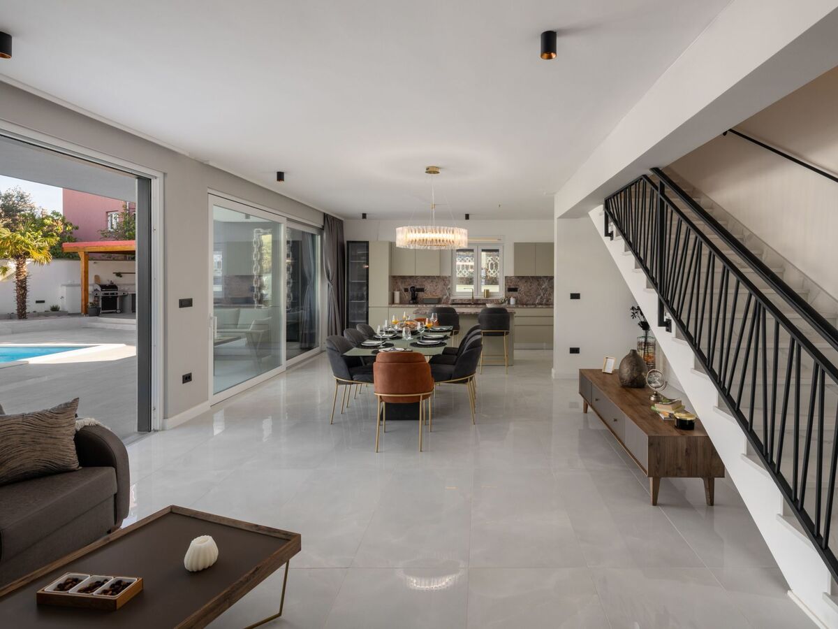 On the ground floor of the villa you can find the kitchen, living room, bathroom and laundry room.