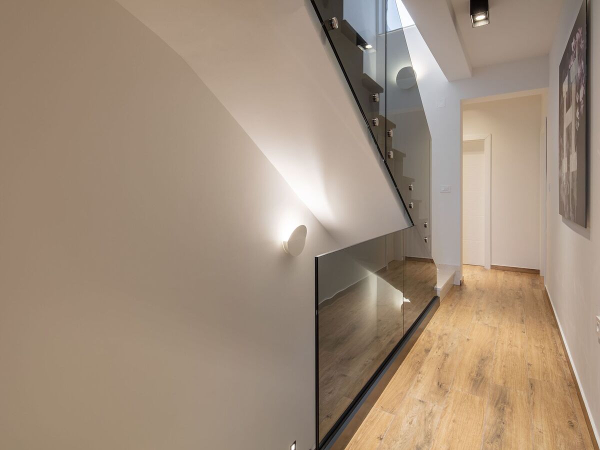 On the ground floor, there is a living room with direct access to the outdoor terrace.