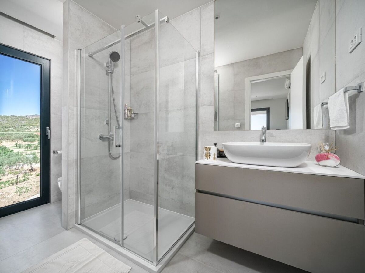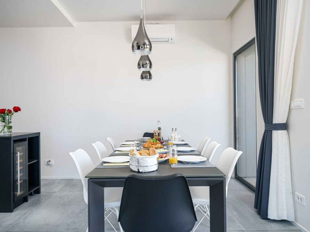 The villa features four well-appointed bedrooms, each with its own double bed, en-suite bathroom, TV, and air conditioning, ensuring that up to 8 guests can enjoy their stay in utmost comfort.