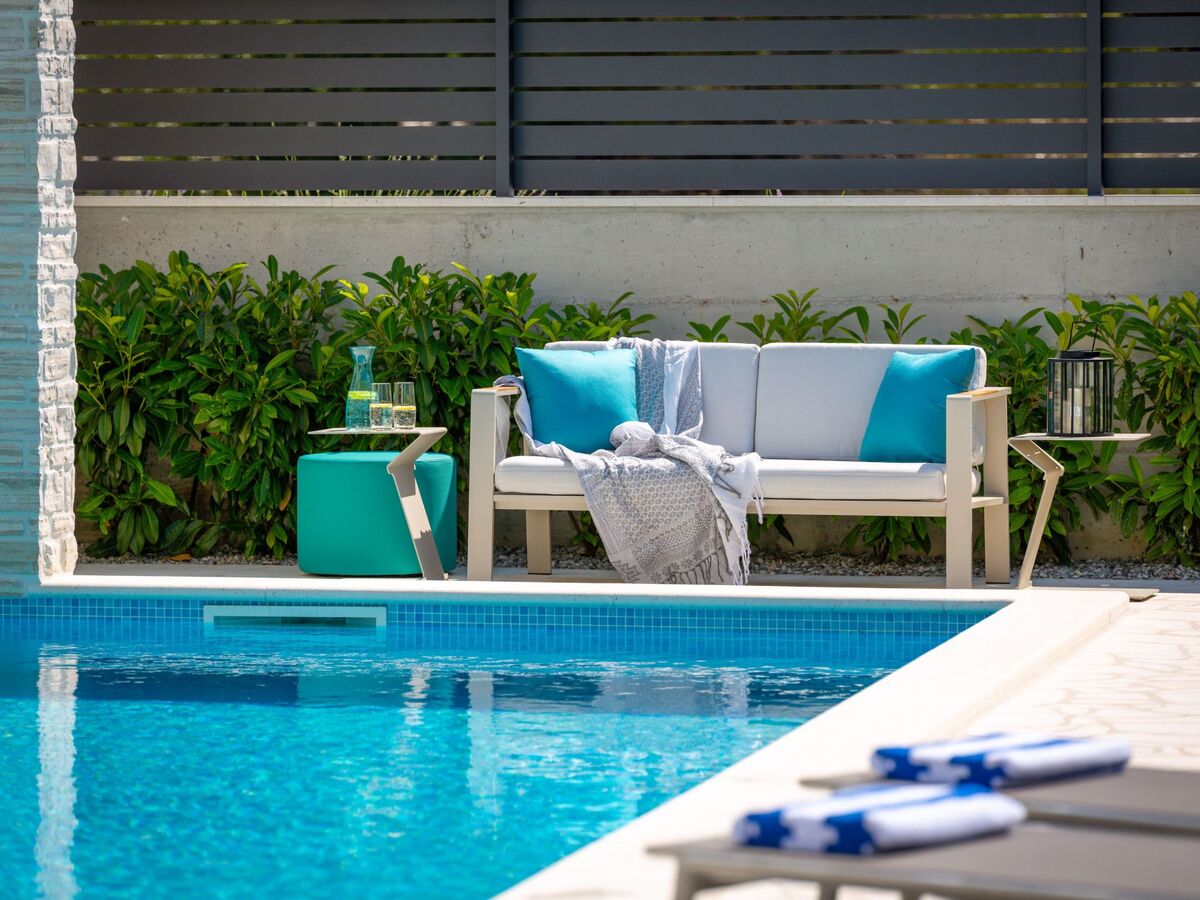 Surrounding it, you'll find comfortable sun loungers, ideal for basking in the sun or lounging under the stars.