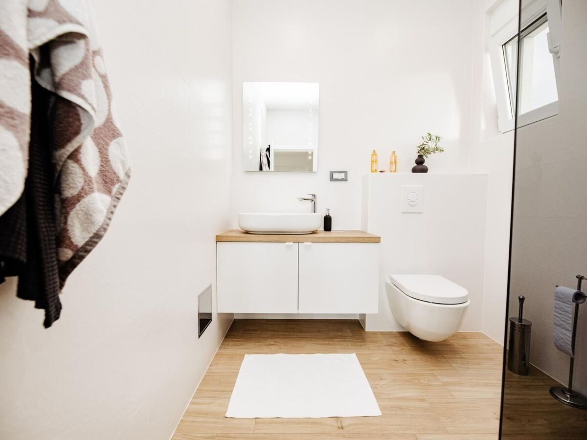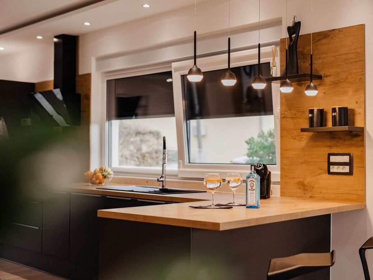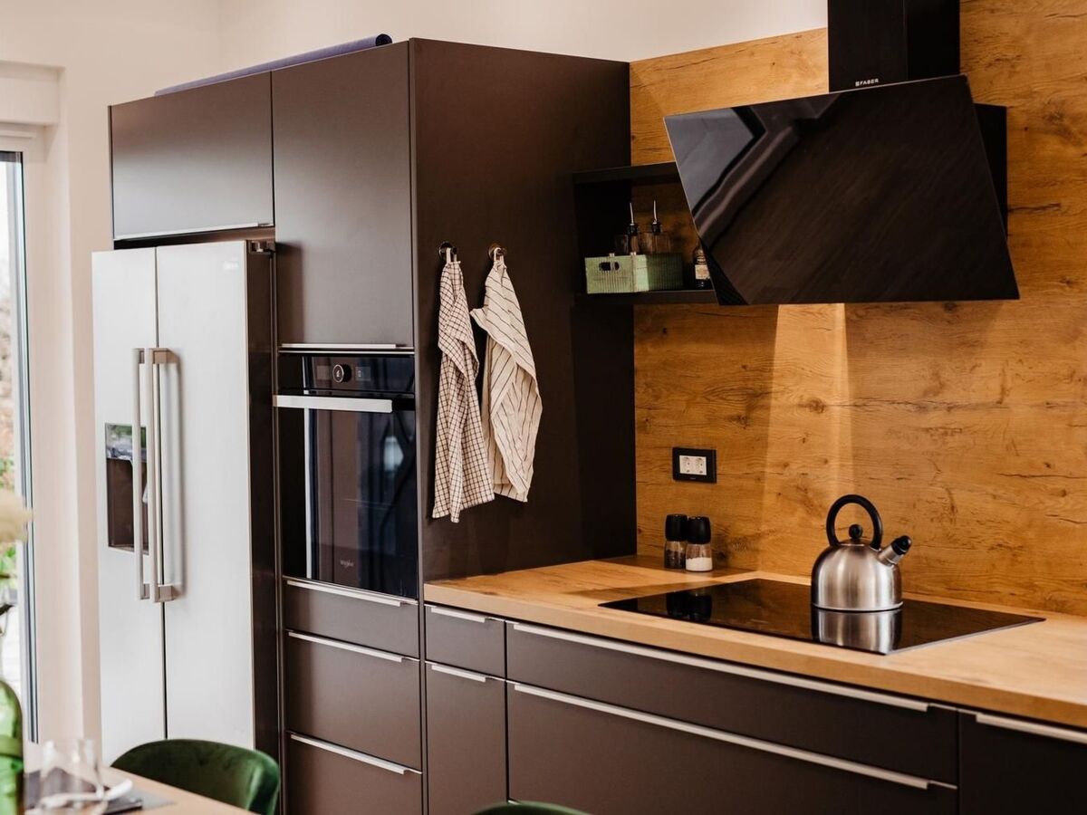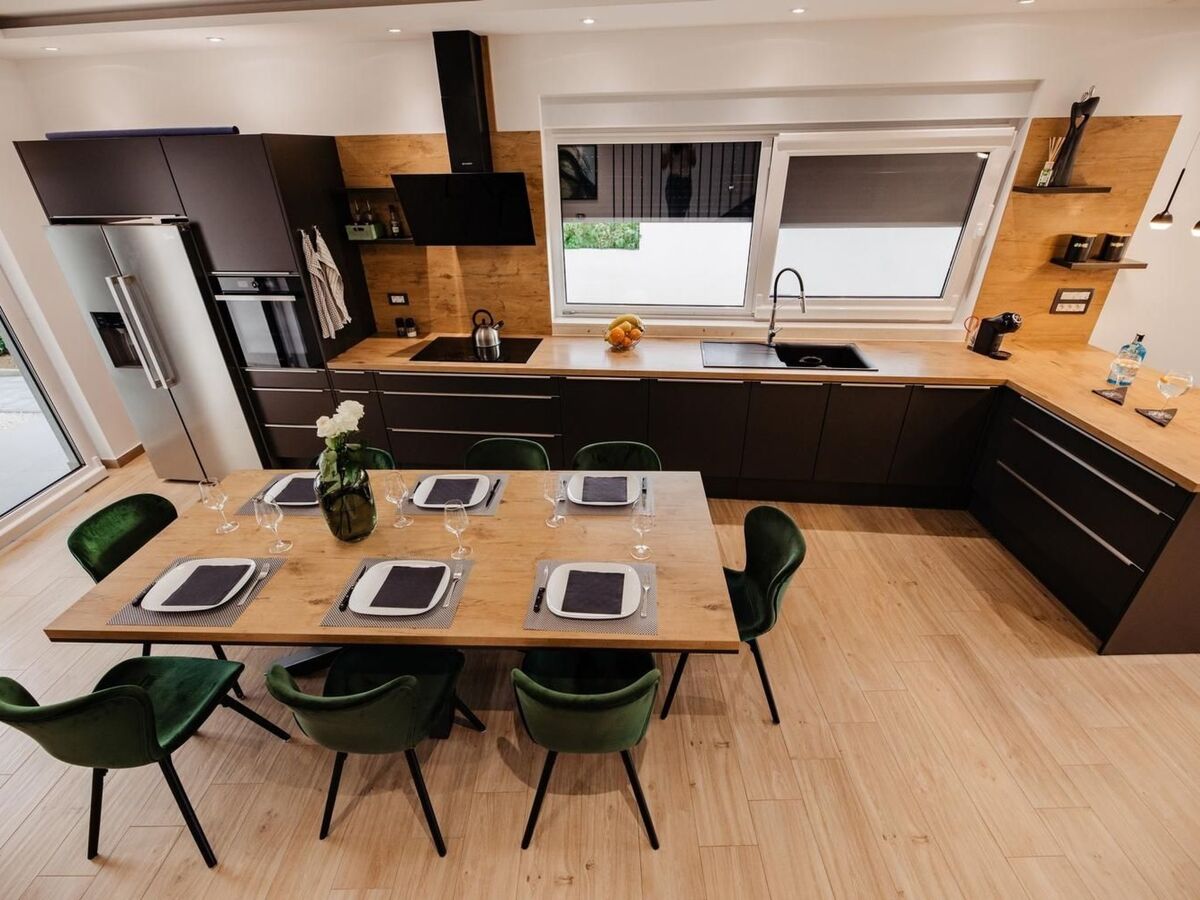 A fully equipped kitchen with a dining area and living room are located on the ground floor of the villa.