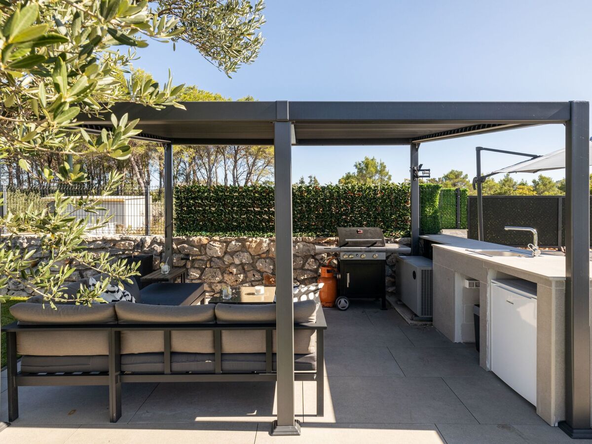 For a unique dining experience, take advantage of the outdoor kitchen equipped with a grill, perfect for preparing delicious meals to enjoy on the terrace.