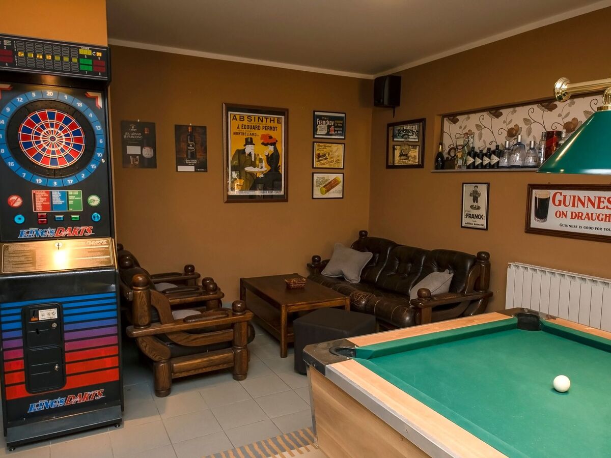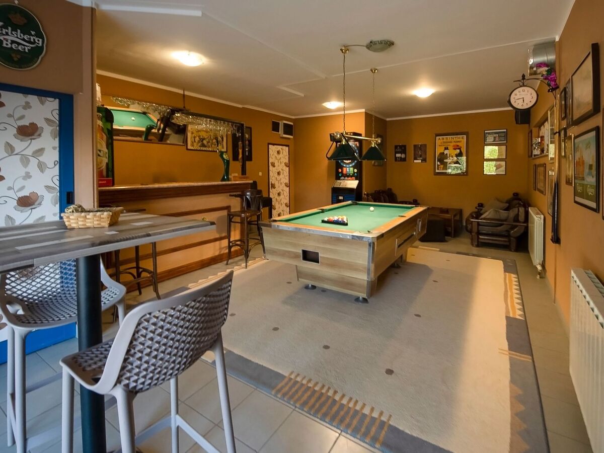 In addition, in the basement a bar and a gamesroom with pool table are available.