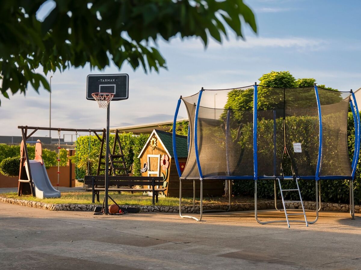 The farm has a children's playground, various sports facilities (table tennis, basketball, badminton, trampoline) and is surrounded by greenery.