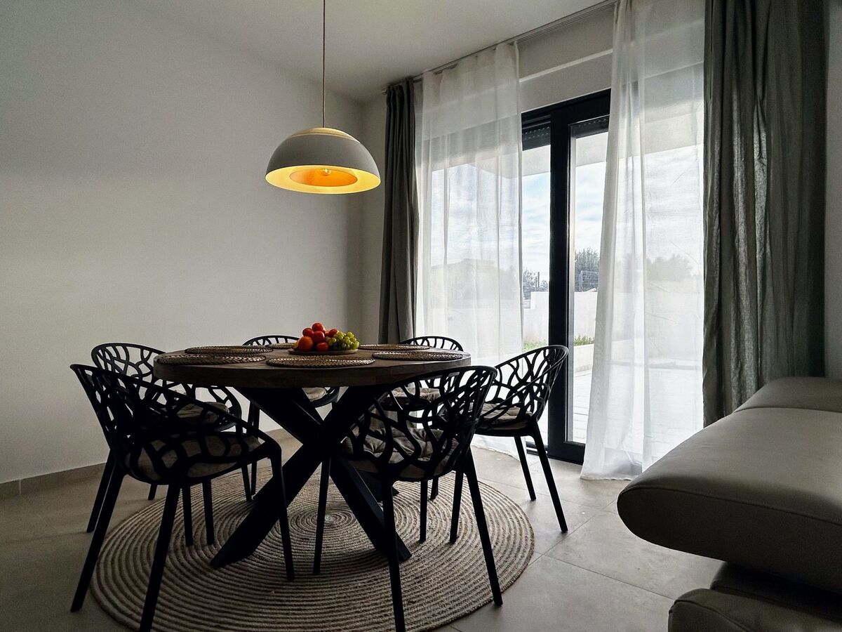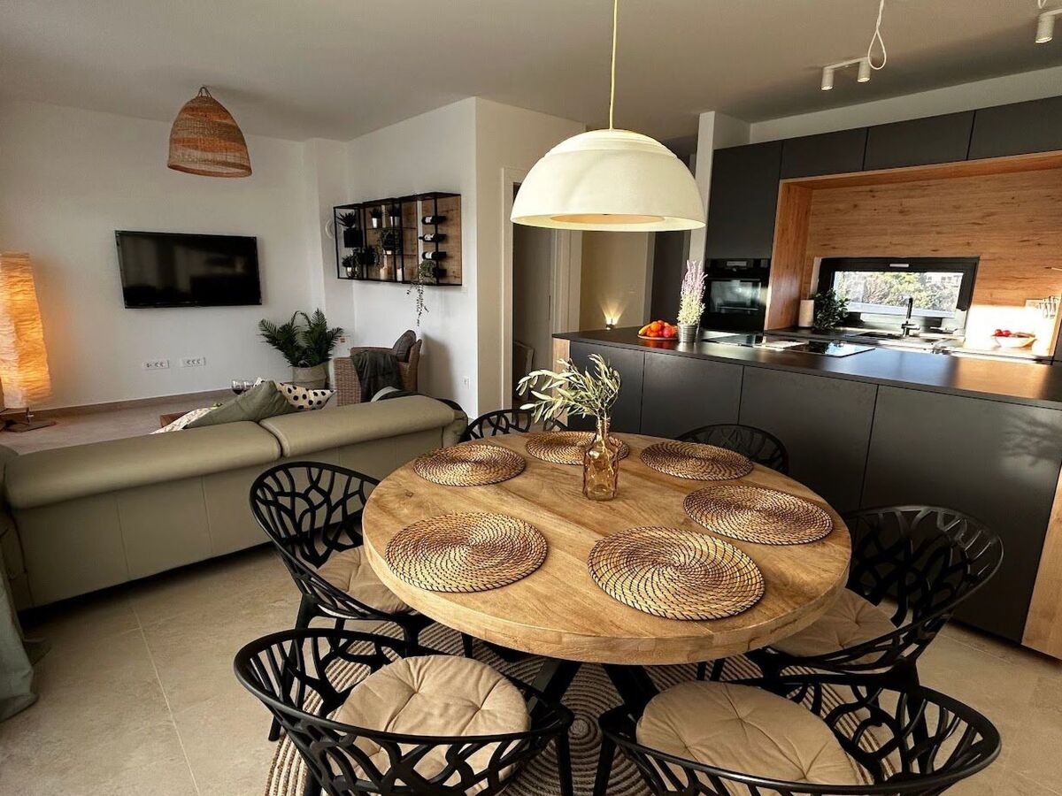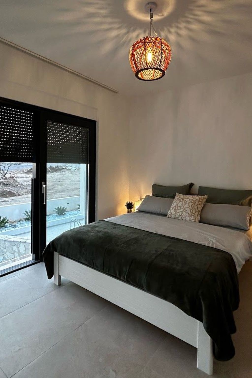 Inside, the villa presents a spacious living room complemented by a fully equipped kitchen and dining room, ensuring a homely atmosphere.
