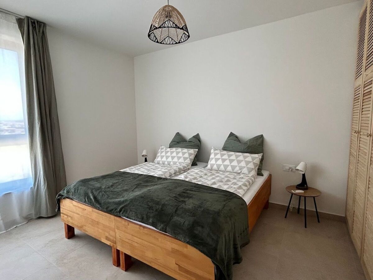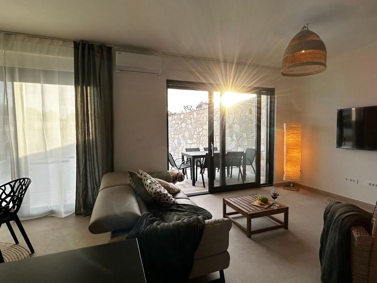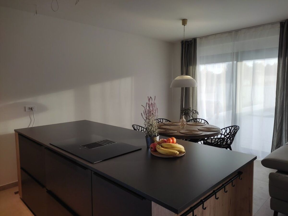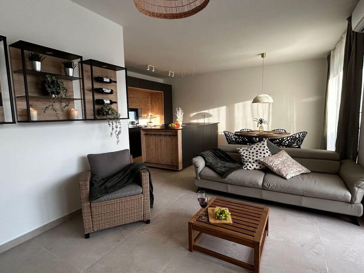 Inside, the villa presents a spacious living room complemented by a fully equipped kitchen and dining room, ensuring a homely atmosphere.