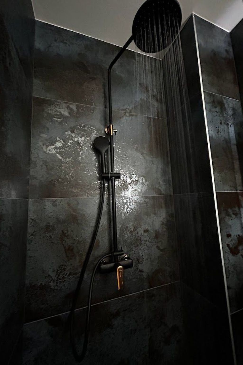 The outdoor courtyard, with its inviting swimming pool, dedicated sitting area, outdoor shower, deckchairs, and parasol, offers a perfect blend of relaxation and entertainment options.