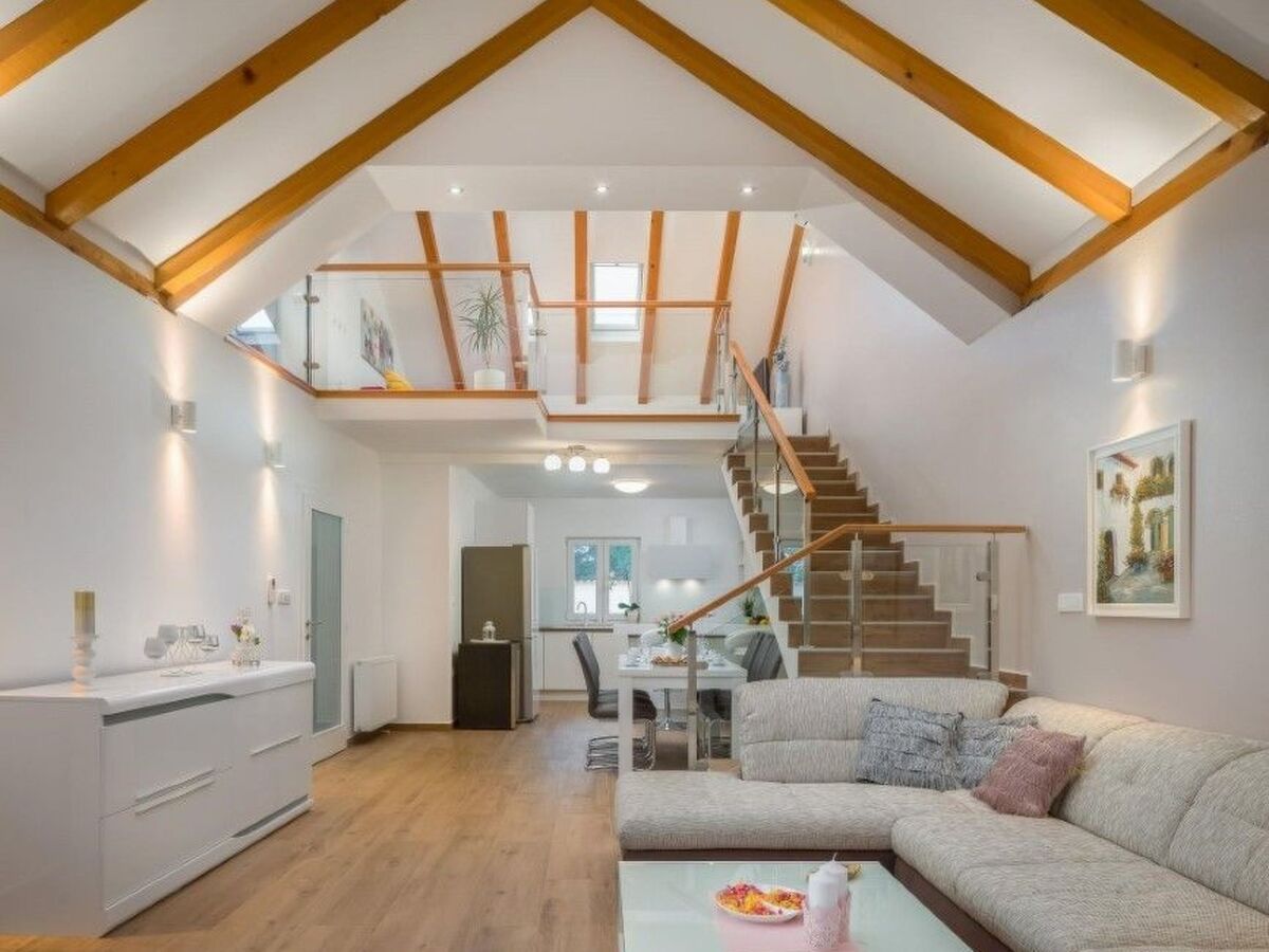 The sofa bed on the gallery and the extra bed in one room are available for two additional guests, so this stone villa can accommodate up to a total of 8 people.