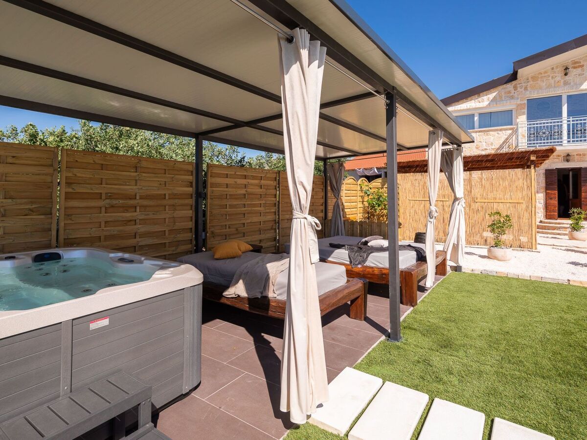 The villa has a pool with a view with a pool bar, as well as a hot tub and a shared kitchen.