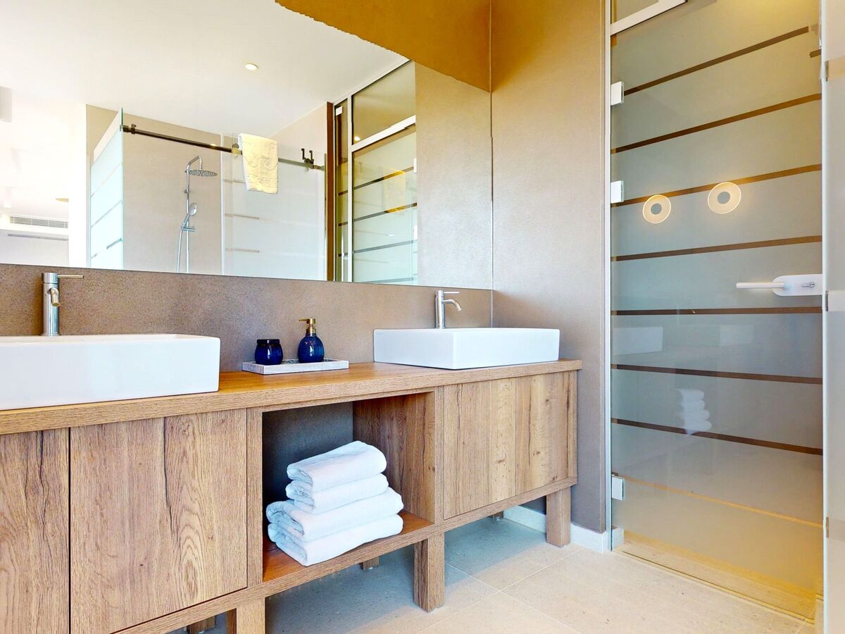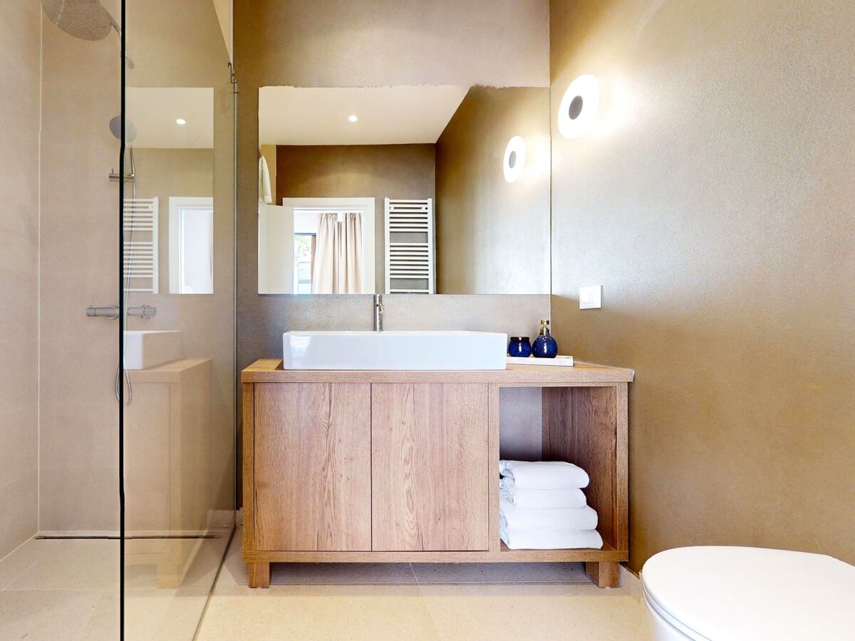 Inside, the villa boasts a seamless blend of comfort and functionality across its five spacious bedrooms, each accompanied by a private bathroom equipped with a toilet, basin, and shower, ensuring privacy and convenience for all guests.